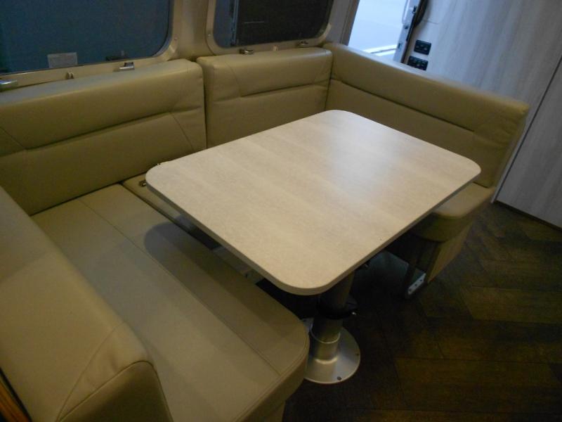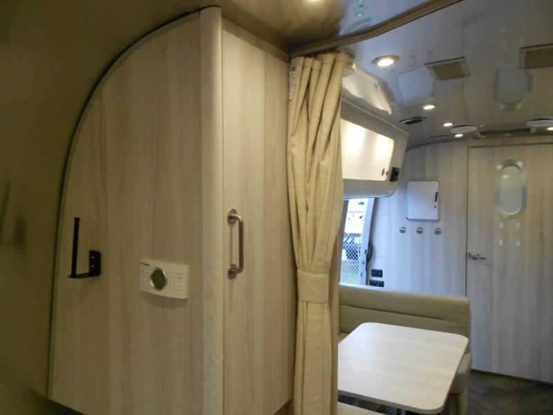 Every time you step foot into the Airstream International travel trailer, you will feel as if you are breathing in a breath of fresh air! The fresh coastal décor was inspired by the waterfront, and the stylish interior delivers a relaxing environment and comfortable luxury. The panoramic windows increase the amount of natural sunlight that streams through to the interior, but they also have blackout shades that you can close whenever you need a darkened room. The beautiful handcrafted Italian Lite-Ply laminated cabinetry is an attractive base for the overhead storage lockers that have sliding doors and LED lighting. The dimmable interior LED lighting will create the perfect amount of illumination for you as you spend time indoors. The exterior has excellent features as well with its enclosed aluminum insulated heated underbelly, unique front door key with heavy-duty deadbolt, optional solar package, solar front window protection, and exterior shower with hot and cold water.