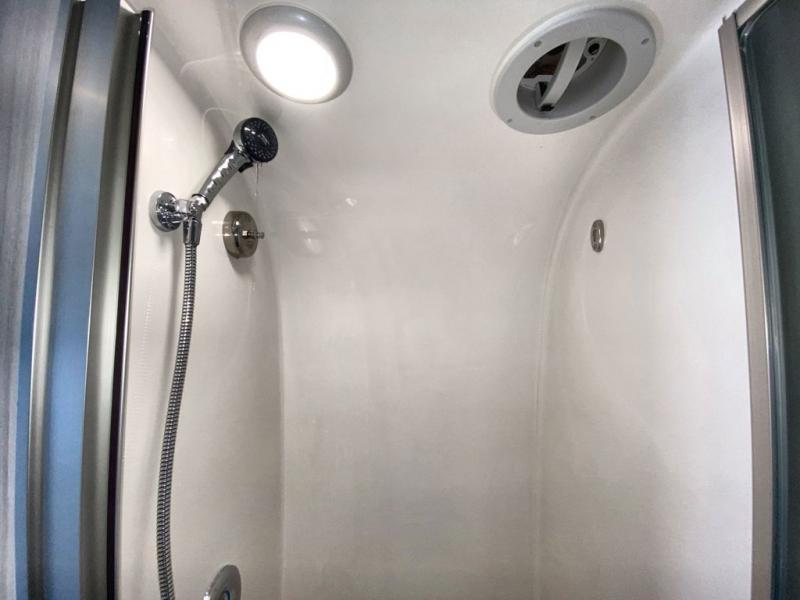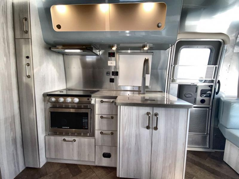 Every time you step foot into the Airstream International travel trailer, you will feel as if you are breathing in a breath of fresh air! The fresh coastal décor was inspired by the waterfront, and the stylish interior delivers a relaxing environment and comfortable luxury. The panoramic windows increase the amount of natural sunlight that streams through to the interior, but they also have blackout shades that you can close whenever you need a darkened room. The beautiful handcrafted Italian Lite-Ply laminated cabinetry is an attractive base for the overhead storage lockers that have sliding doors and LED lighting. The dimmable interior LED lighting will create the perfect amount of illumination for you as you spend time indoors. The exterior has excellent features as well with its enclosed aluminum insulated heated underbelly, unique front door key with heavy-duty deadbolt, optional solar package, solar front window protection, and exterior shower with hot and cold water.