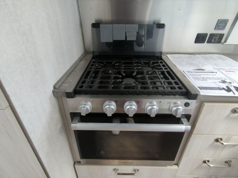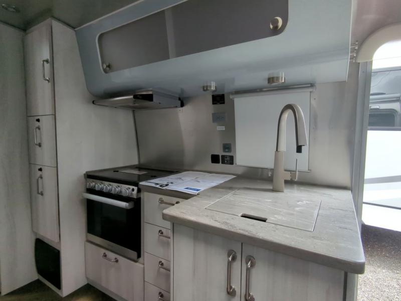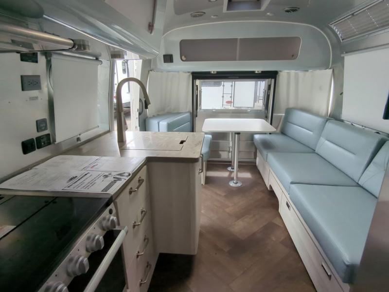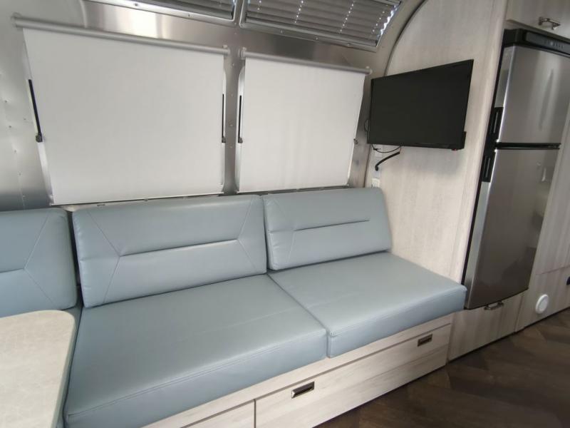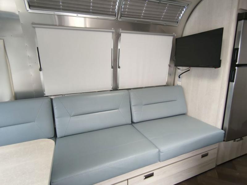 Every time you step foot into the Airstream International travel trailer, you will feel as if you are breathing in a breath of fresh air! The fresh coastal décor was inspired by the waterfront, and the stylish interior delivers a relaxing environment and comfortable luxury. The panoramic windows increase the amount of natural sunlight that streams through to the interior, but they also have blackout shades that you can close whenever you need a darkened room. The beautiful handcrafted Italian Lite-Ply laminated cabinetry is an attractive base for the overhead storage lockers that have sliding doors and LED lighting. The dimmable interior LED lighting will create the perfect amount of illumination for you as you spend time indoors. The exterior has excellent features as well with its enclosed aluminum insulated heated underbelly, unique front door key with heavy-duty deadbolt, optional solar package, solar front window protection, and exterior shower with hot and cold water.