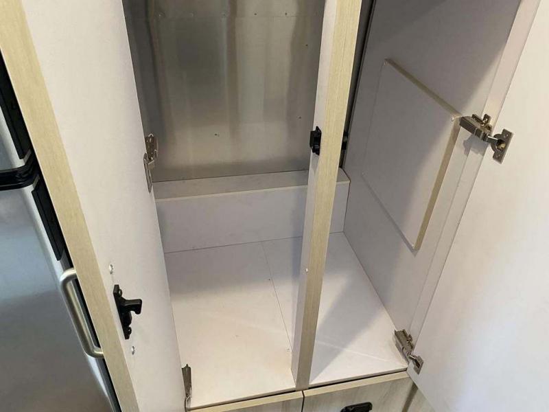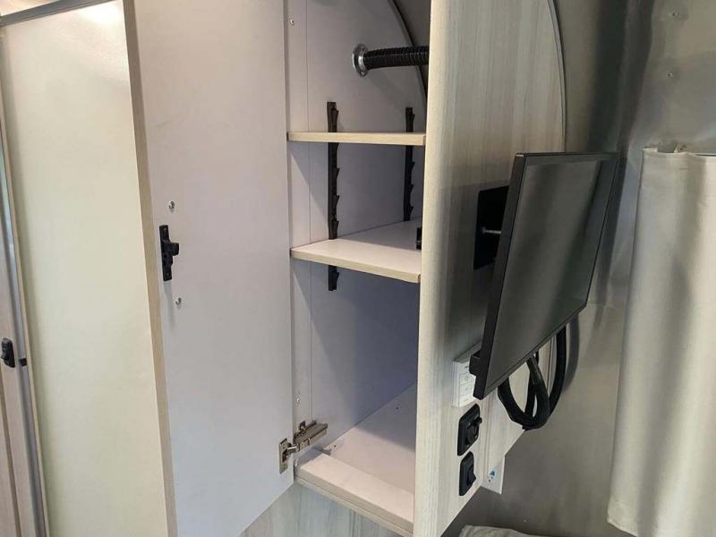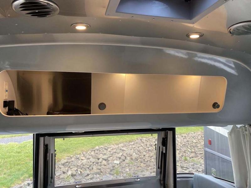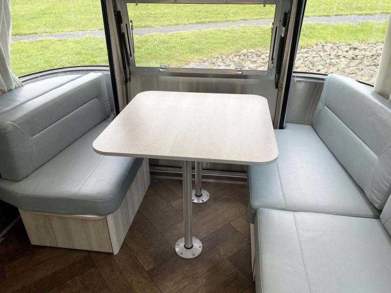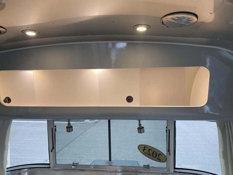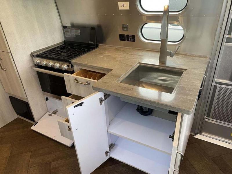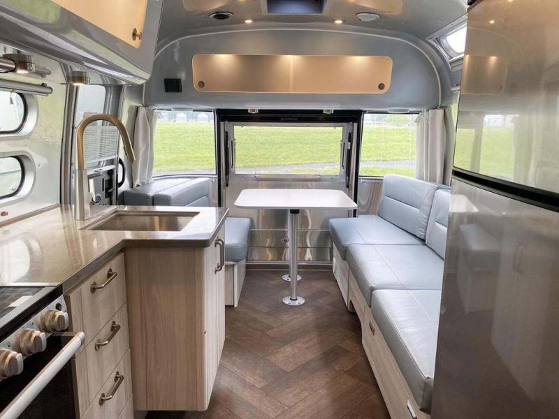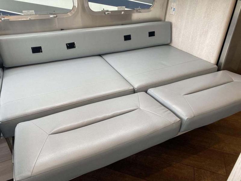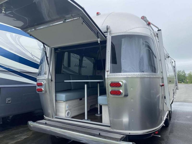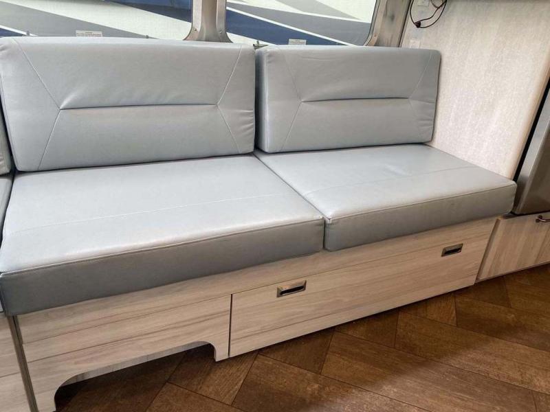 Every time you step foot into the Airstream International travel trailer, you will feel as if you are breathing in a breath of fresh air! The fresh coastal décor was inspired by the waterfront, and the stylish interior delivers a relaxing environment and comfortable luxury. The panoramic windows increase the amount of natural sunlight that streams through to the interior, but they also have blackout shades that you can close whenever you need a darkened room. The beautiful handcrafted Italian Lite-Ply laminated cabinetry is an attractive base for the overhead storage lockers that have sliding doors and LED lighting. The dimmable interior LED lighting will create the perfect amount of illumination for you as you spend time indoors. The exterior has excellent features as well with its enclosed aluminum insulated heated underbelly, unique front door key with heavy-duty deadbolt, optional solar package, solar front window protection, and exterior shower with hot and cold water.