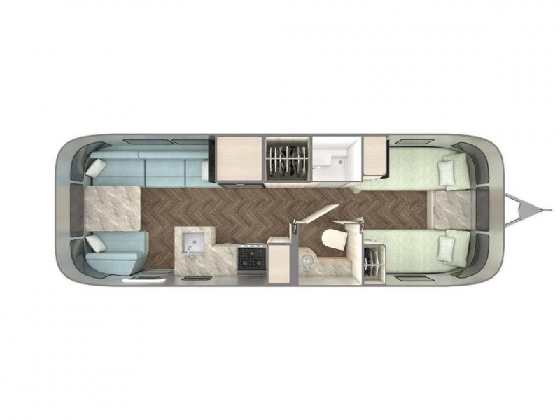 Airstream International travel trailer 27FB Twin highlights: