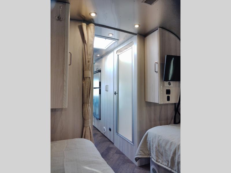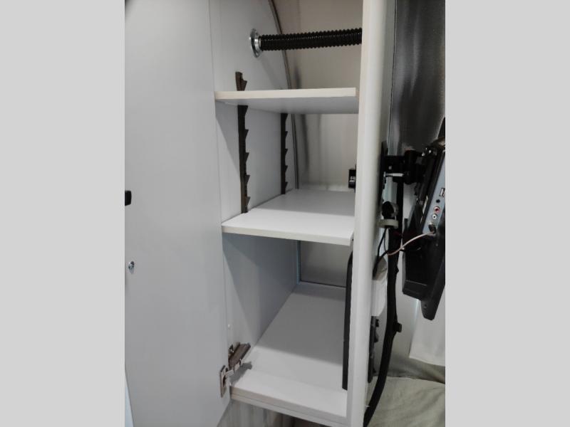 If you want a model just like 27FB, but you would prefer to have two twin-size beds in place of the one RV queen bed, then you must check out this International travel trailer! This trailer has a front bedroom with two twin beds for your convenience, and the kitchen has a three-burner cooktop, stainless steel sink, 8 cu. ft. refrigerator, and microwave so that you can create new and exciting dishes each time you are away. This trailer also has excellent storage space with the overhead storage lockers, the wardrobe with hanging bar, the under-bed storage, and the exterior storage compartment. You can also find great entertainment as you spend your time in this trailer because the two LED HDTVs will allow you to watch a movie on the Blu-Ray DVD player.