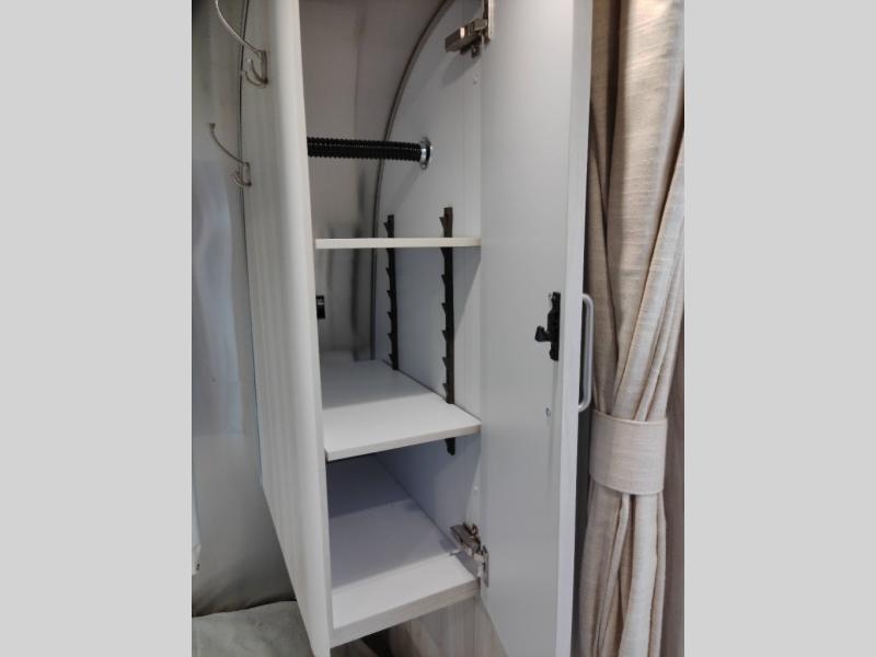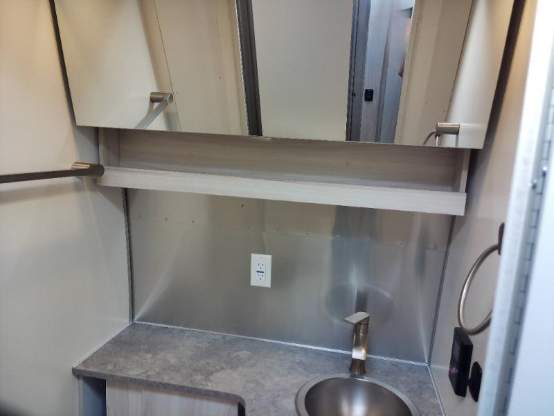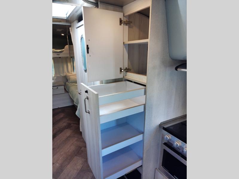 Every time you step foot into the Airstream International travel trailer, you will feel as if you are breathing in a breath of fresh air! The fresh coastal décor was inspired by the waterfront, and the stylish interior delivers a relaxing environment and comfortable luxury. The panoramic windows increase the amount of natural sunlight that streams through to the interior, but they also have blackout shades that you can close whenever you need a darkened room. The beautiful handcrafted Italian Lite-Ply laminated cabinetry is an attractive base for the overhead storage lockers that have sliding doors and LED lighting. The dimmable interior LED lighting will create the perfect amount of illumination for you as you spend time indoors. The exterior has excellent features as well with its enclosed aluminum insulated heated underbelly, unique front door key with heavy-duty deadbolt, optional solar package, solar front window protection, and exterior shower with hot and cold water.