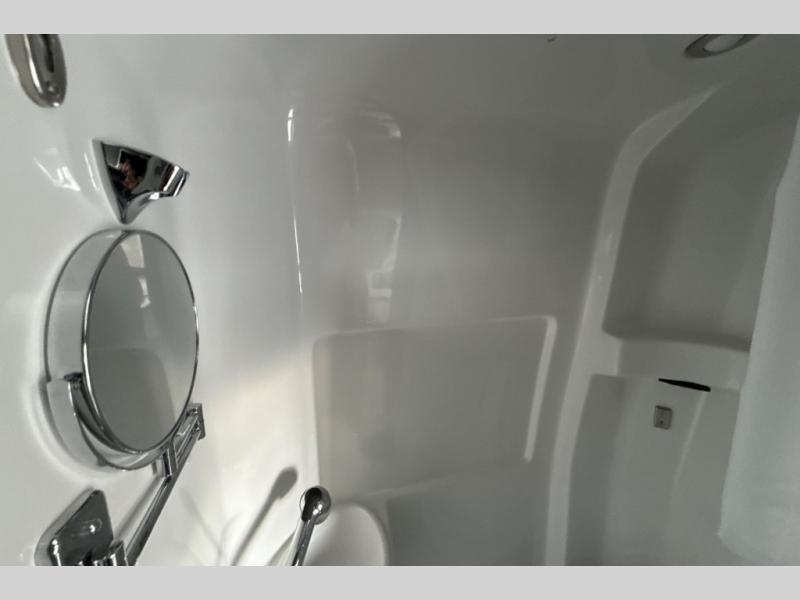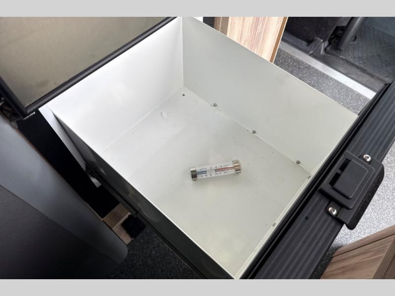 You'll be ready for just about anything with this Interstate 24X Class B diesel motorhome! This coach has some great storage solutions with the aluminum aircraft L-track storage system, lower storage compartments under the seating, oversized center aisle storage for kayaks or bikes, a pantry with built-in drawers and shelves, and a security safe. Nothing will be more convenient to have while traveling on the road than the heated wet bath with a retractable clothesline and towel rack, and the galley kitchen with cooktop, sink, and refrigerator. The blackout privacy and light shades are another useful feature that will allow you to block out the light while you sleep.