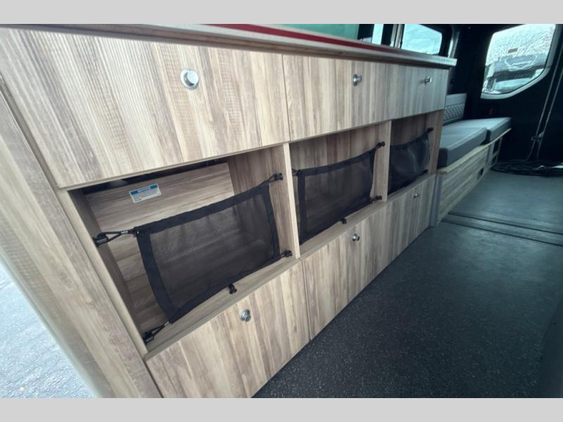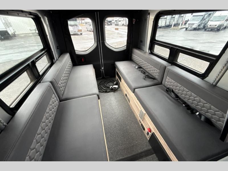 For the true adventurer, there isn't much that quite compares to the Airstream Interstate 24X Class B diesel motorhome! This brand is exceptional for off-grid tours because of its four-wheel drive, air ride suspension, and all-season all-terrain rugged tires. There is also a black roof rack, exterior gear wash station, and an off-road front HD LED light bar. The cockpit has an MBUX infotainment system and premium digital media receiver with Bluetooth connectivity for the tech enthusiast, and you can also add an optional front bed system to the cockpit if you need another sleeping space. You'll also love the adjustable LED lighting, Ultraleather seating, solid surface galley countertop with edge band lighting, and many more interior comforts!