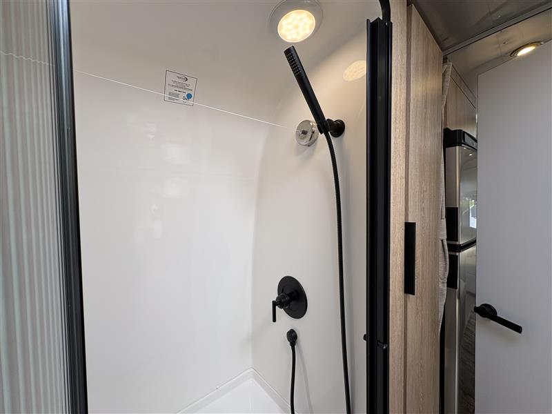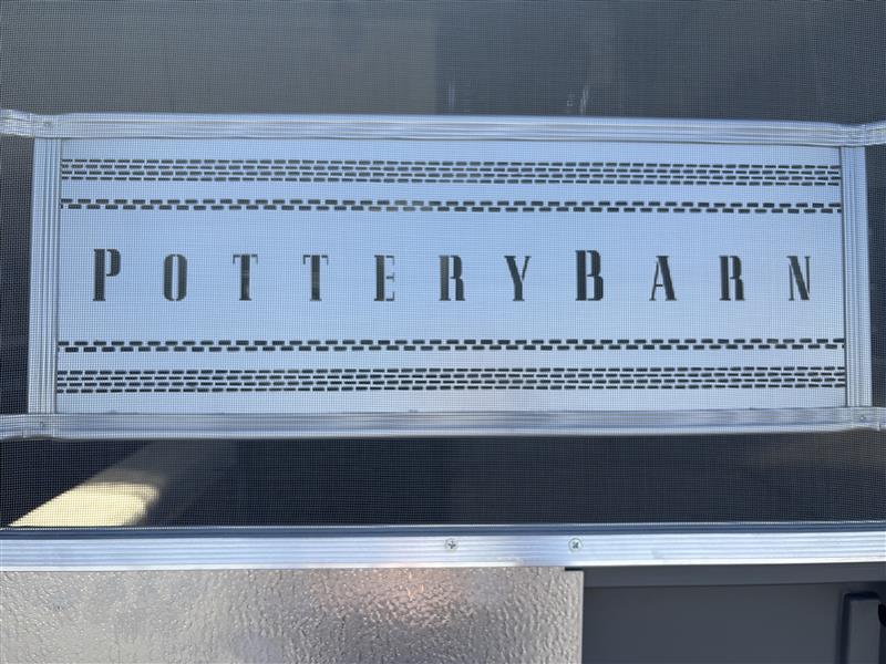 You will be astounded by this design-focused Pottery Barn Special Edition travel trailer! The ready-to-camp accessories make this trailer extremely functional. Some of those features are the Pottery Barn 16-piece dinnerware set, 20-piece flatware set, 4-piece set of marble cheese knives, folding bistro table, and set of two folding chairs. The Fusion touchscreen stereo with surround sound and subwoofer will help you set the mood for relaxing, and the Pottery Barn colossal handknit throw will help you cozy up on the couch. In the private bedroom, you'll find canvas storage bins that you can use to keep all of your belongings easily accessible, LED reading lights, a wardrobe with hanging bar, blackout pleated curtains for the panoramic windows, and an LED HDTV for entertainment. The residential bathroom is quite impressive with its sconce lighting, removable Moen handheld shower head, reeded glass shower door, retractable clothes line, and round mirror with two-shelf medicine cabinet.