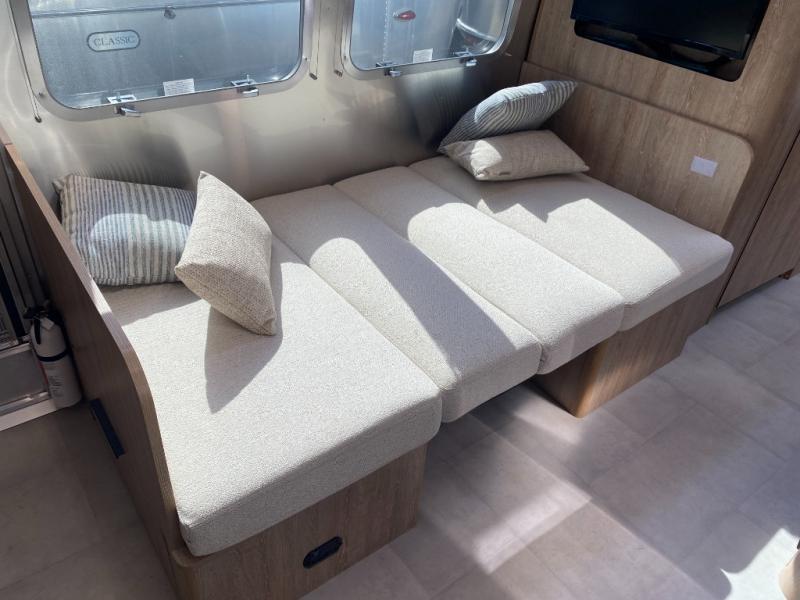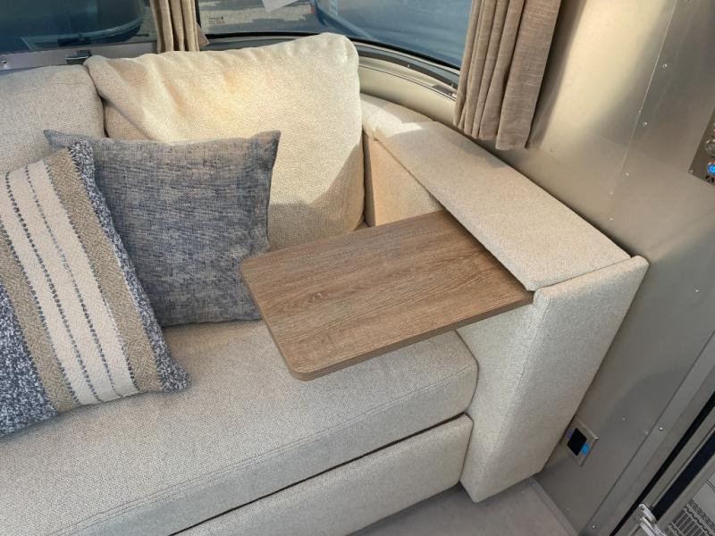 The timeless, beautiful, and comfortable Airstream Pottery Barn Special Edition travel trailer allows you to stay connected while always feeling at home! These trailers feel like an extension of your own home with their elegant décor, and they provide a sanctuary that you can retreat to when you need to recharge surrounded by nature. The luxurious window coverings are made from Pottery Barn's best-selling Emery Linen Curtain Collection, and there is an airline-style table hidden in the sofa's armrest. The door-mounted chalkboard allows you to leave personalized messages for the group, and the built-in spice rack and knife block let you keep everything close at hand while you cook. Plus, each bedroom has Pottery Barn Belgian Flax Linen bedding for extreme comfort. Some of the excellent exterior features include a rearview monitoring system, power awning, a low-pressure gas grill connection, Quietstream climate control, power stabilizer jacks, three rooftop solar panels, and front stone guards.