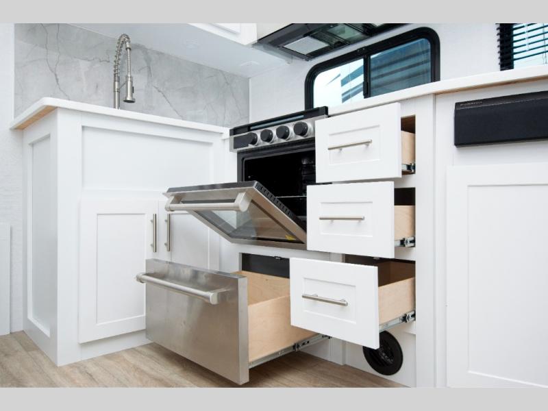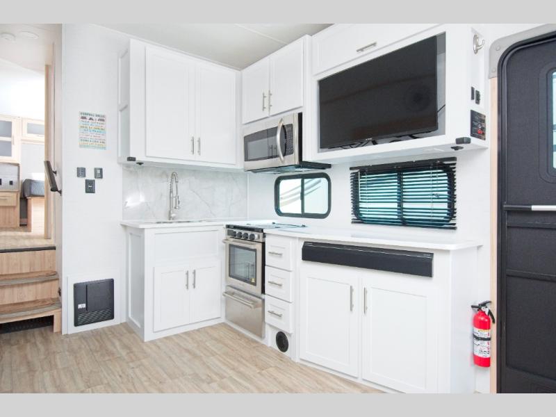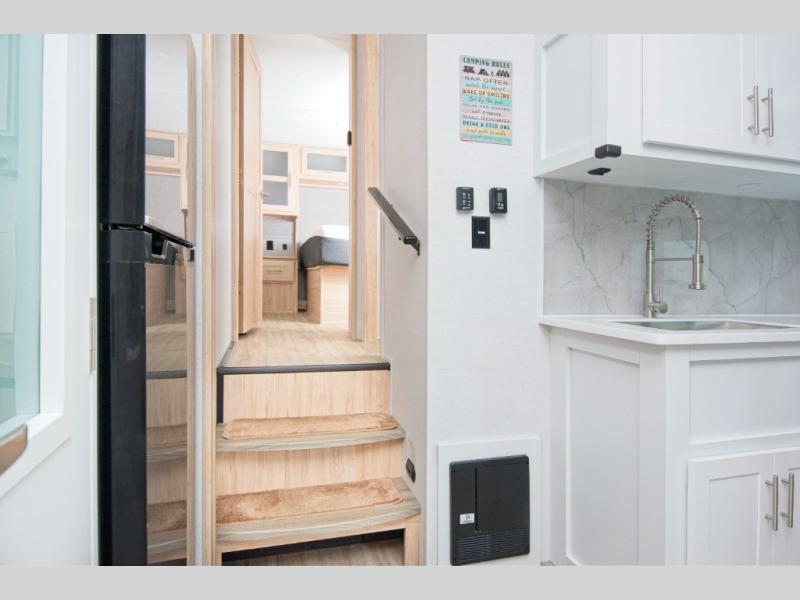 High-End Features in a Mid-Size Package: Ideal for first-time fifth-wheel buyers or downsizing RVers who still want luxury and livability.