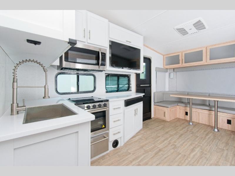 Rear Dinette Layout: Enjoy mealtime and morning coffee with panoramic rear windows that bring in natural light and breathtaking views.