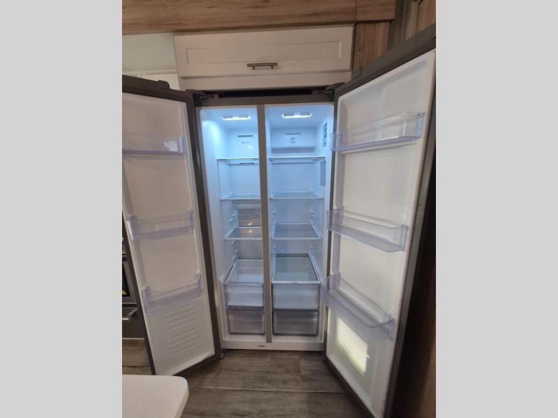 A benchmark chassis creates a space saver upper deck with each one of these Avenue fifth wheels by Alliance RV! The 101 in. wide-body construction gives you more room to walk around and the flush slide out floors throughout prevent any tripping. There are Azdel composite sidewalls inside and out, and a seamless fully walkable PVC roof for extreme durability, zero maintenance, and it is more solar reflective because of the bright white color. Twin 13,500 BTU A/C units provide 27,000 BTUs of cooling power which are ultra quiet and independently controlled keeping you comfortable during your entire trip. And, the fully enclosed and heated underbelly means that you can extend your camping season into the colder months if you like. You are sure to love the "no carpet zone" making each Avenue easy to clean and allergen free, not to mention pet friendly with vinyl flooring throughout. And, strategically placed Atrium windows in the bedroom and living area will not only provide more light, cross ventilation and fresh air, but bring a spectacular view of your surroundings right inside. You can maximize your space throughout with innovative storage solutions like the hidden storage behind the TV, inside the end tables, ottoman, and dinette chairs. Come choose your favorite model today!