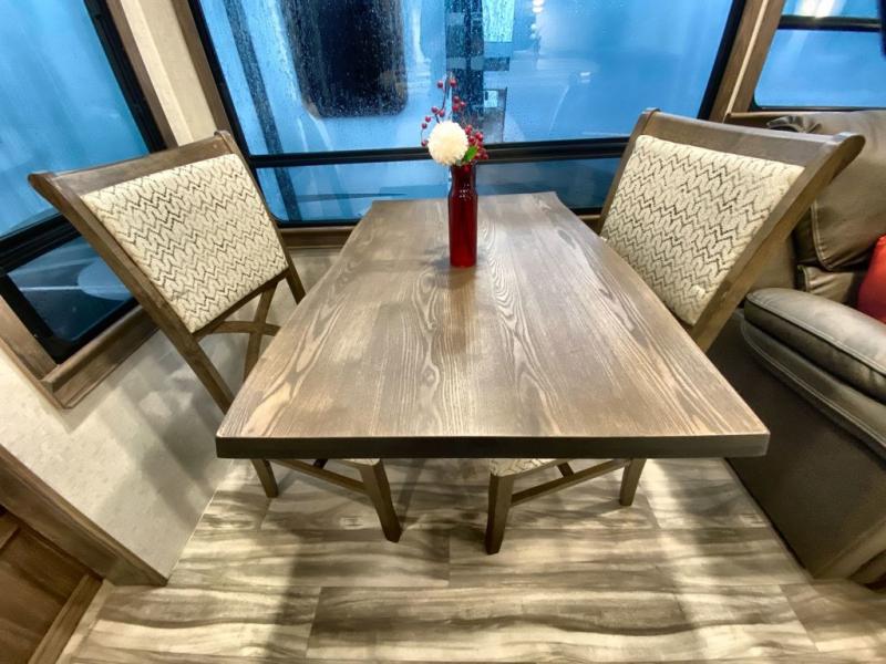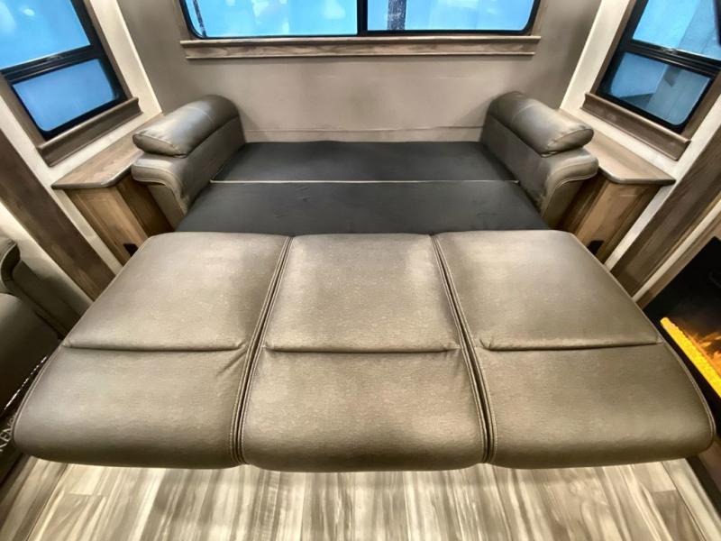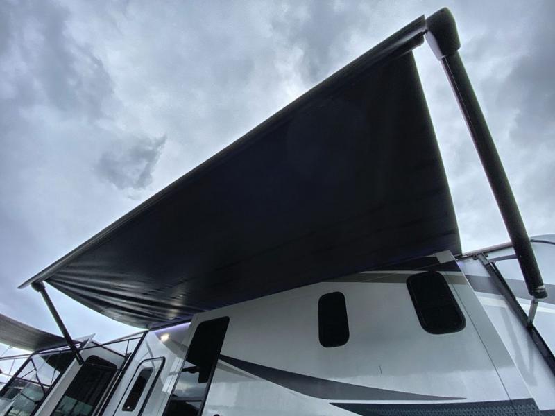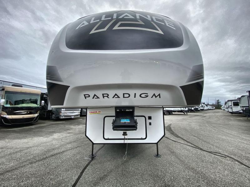 The Paradigm fifth wheels by Alliance RV are functional, high-quality, and luxurious for an unforgettable camping experience. There are three A/C units and a 40K BTU furnace to keep you comfortable year around, and you'll appreciate additional convenient amenities, like the all-in-one enclosed/heated utility center and the color coded and numbered wiring. A Roto-Flex pin box comes standard for hassle-free towing, along with Super-G 4,400 lb. rated tires and Dexter 7,000 lb. axles. You'll love the kitchen with its LG solid surface countertops and Insignia range, plus there is LED motion lighting in the pantry and a Maxx fan with a rain sensor to keep everything fresh when making dinner. Each model also includes an HD Smart TV in the living room and bedroom, plus a Winegard Air 360 antenna to keep you connected to the outside world. And of course there are a variety of options you can choose from to further customize your fifth wheel; dual pane windows, Super Solar Plus, slide out awning toppers, and generator prep or a generator to name a few!