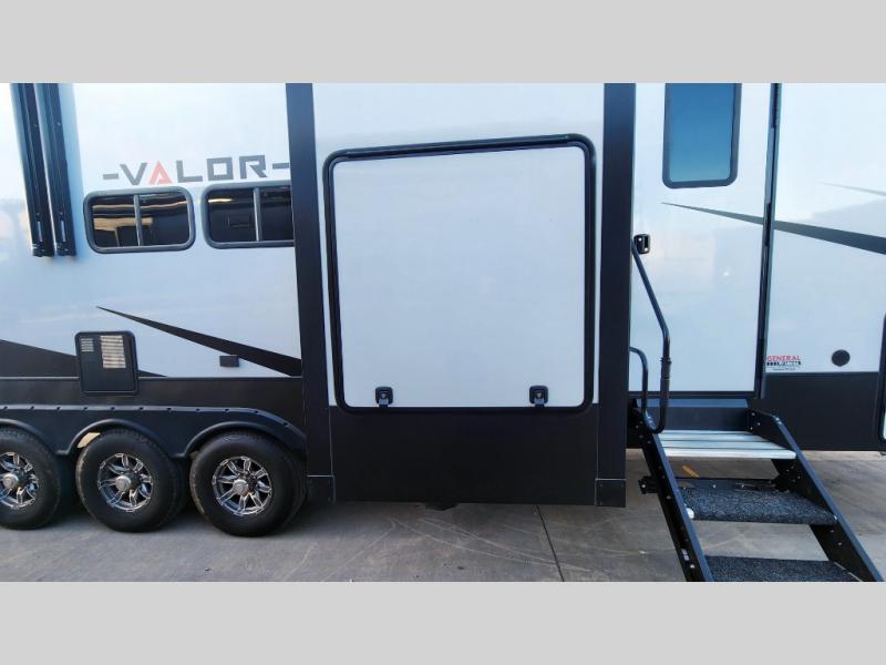 You can bring your toys with you wherever you go with any one of these Alliance RV Valor toy haulers! They are adventure-ready with a quality build from the walk on roof with seamless PVC roof covering to the commercial grade vinyl flooring and MorRyde CRE3000 suspension system. The Performance Running Gear package comes with a 101" wide-body benchmark chassis platform, 7,000 lb. Dexter axles, and a pass-through basement storage with an additional front compartment for all your gear. You can even go off-gridding thanks to the Off the Grid Pack that has two 320 watt solar panels, generator prep, a 40 amp charge controller, and a 100 amp hour lithium iron phosphate battery, plus a battery monitor system. Come find the right one for you today!