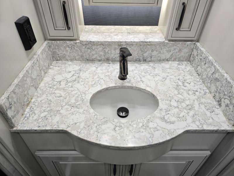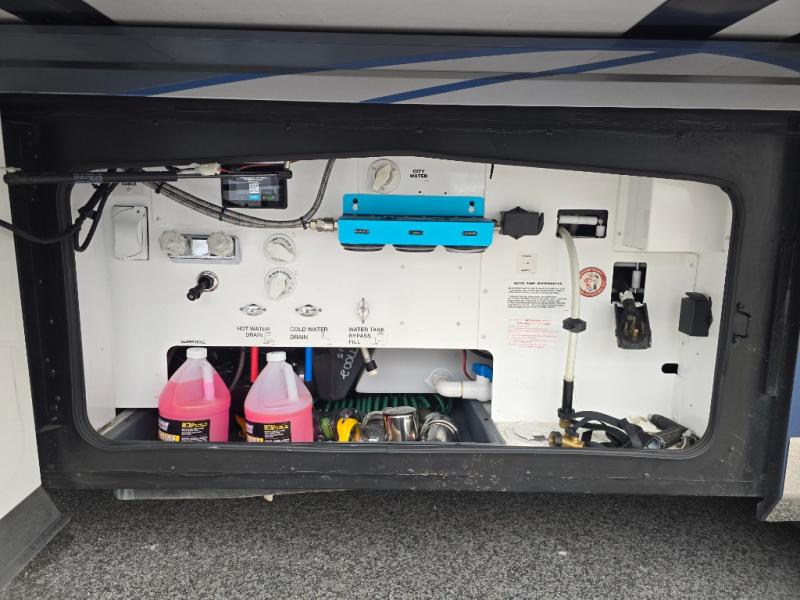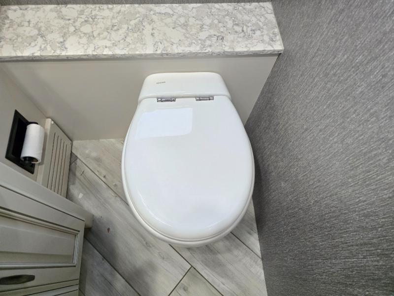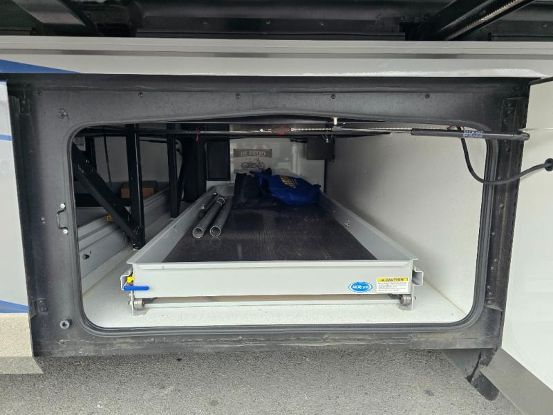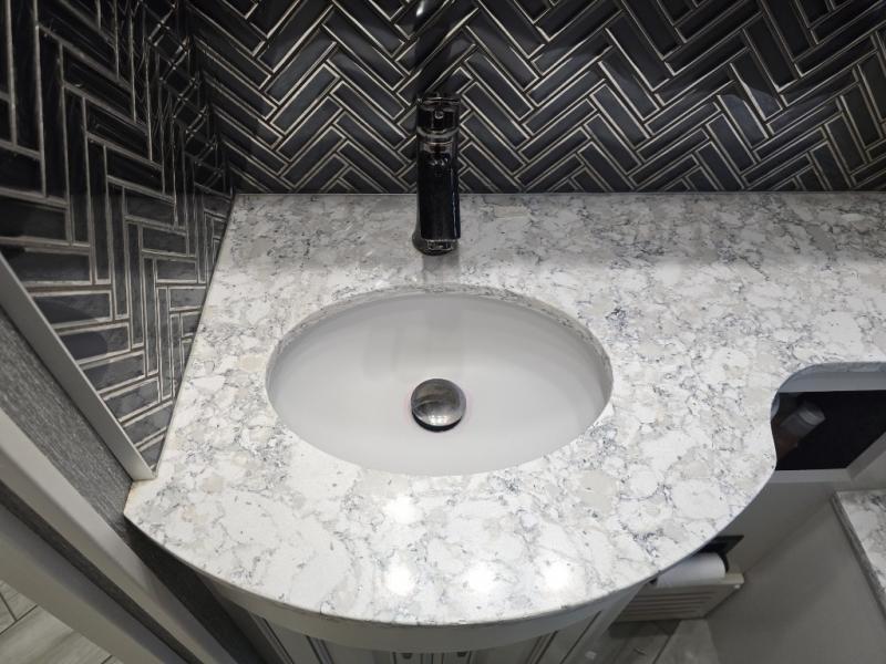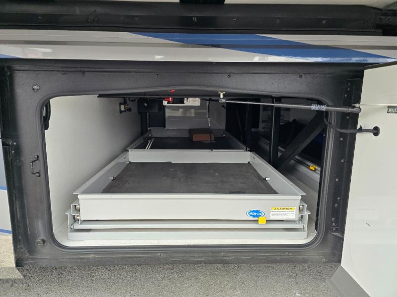 You won't want to travel any other way once you step inside this motorhome! The 80" loveseat and 90" sofa with queen mattress offers comfortable places to relax after a long day on the road. Grab a snack from the kitchen pantry, a cold beverage from the residential four door refrigerator with ice maker, and play some card games at the dining table and chairs. The galley pull-out counter will make meal prepping easier too. Across from the half bathroom is a stackable Samsung washer and dryer to keep your clothes clean throughout the entire trip. The full rear bathroom has a 30" x 55" shower with a seat to clean up in and a wardrobe to keep your towels close!