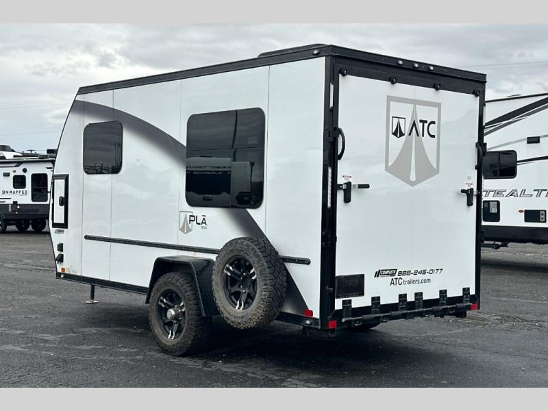 Are you ready for an adventure of a lifetime? Well then, you need to get your hands on one of these ATC Trailers PLA 350 ultra lite travel trailer toy haulers! Look out at your beautiful scenery through the frameless dual pane windows and pull down the blackout roller shades when it's time to hit the hay. The cableless rear ramp door makes for smooth loading and unloading, and the entry door comes with a screen door to prevent bugs from coming inside. The Above & Beyond package includes a full perimeter welded aluminum frame for a strong and flexible structure, a one-piece aluminum roof, and EZ lube torsion axles with self-adjusting brakes. An enclosed underbelly with radiant barrier will protect your unit through all weather conditions. Come find your favorite one today!
