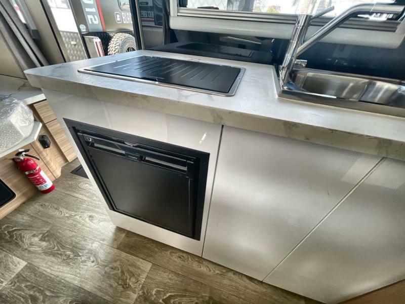 The Black Series Camper travel trailer and toy hauler were specifically designed to go on diverse and expansive terrain! These trailers have high quality and intense durability so that you can have great luxury while away from home. You will find solar panels to use when you are off-grid, and there is a 12V/120V electrical system and 100AH batteries for power. You will be able to access hot water with the 6-gallon Atwood gas hot water heater, and the independent suspension is exceptionally smooth for traveling.