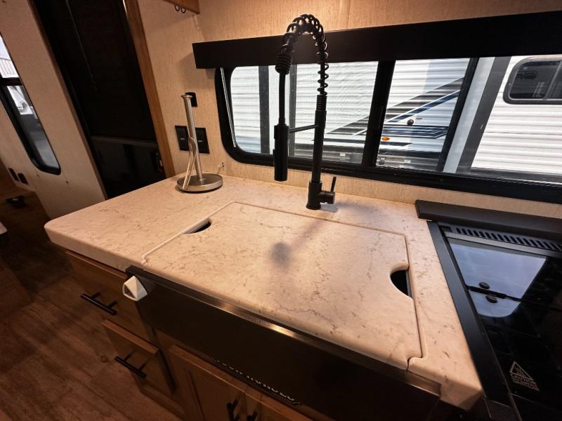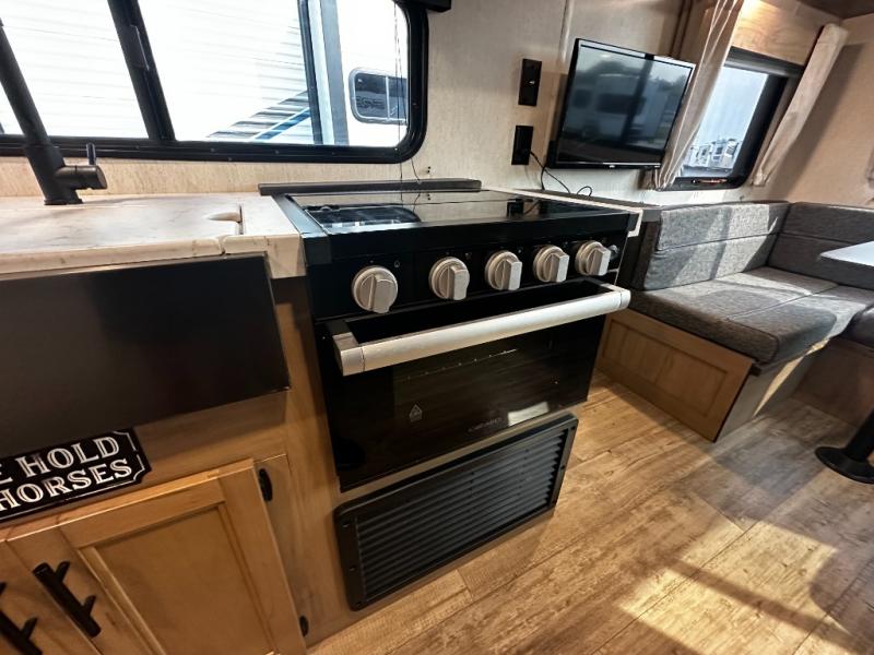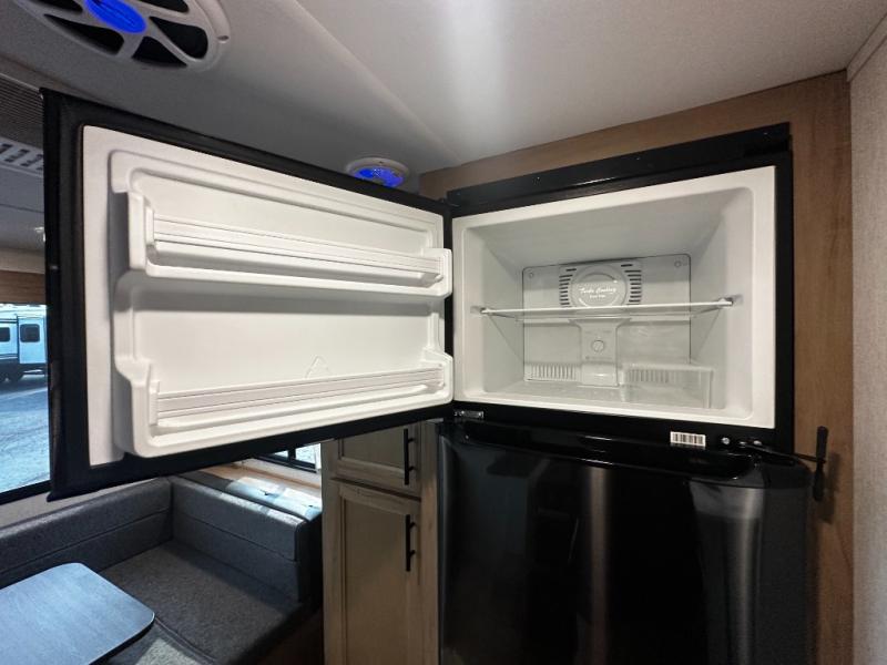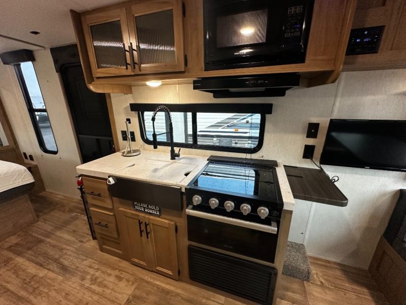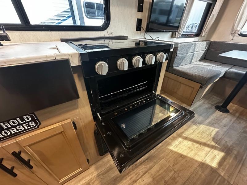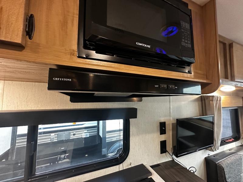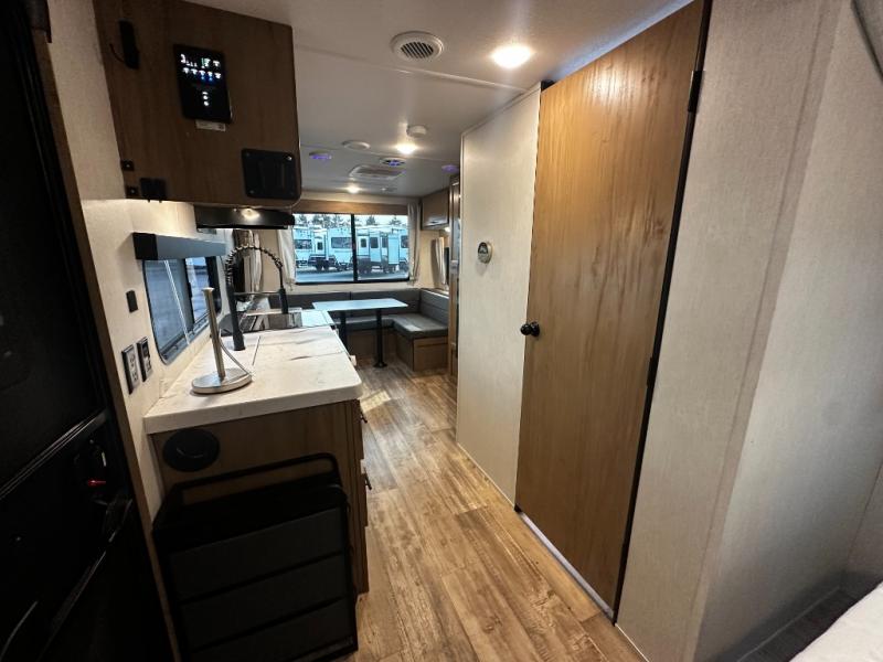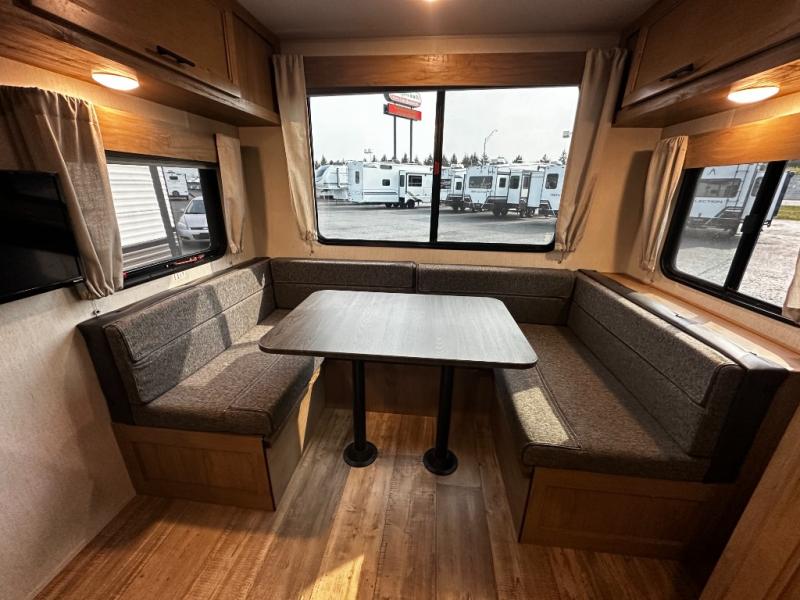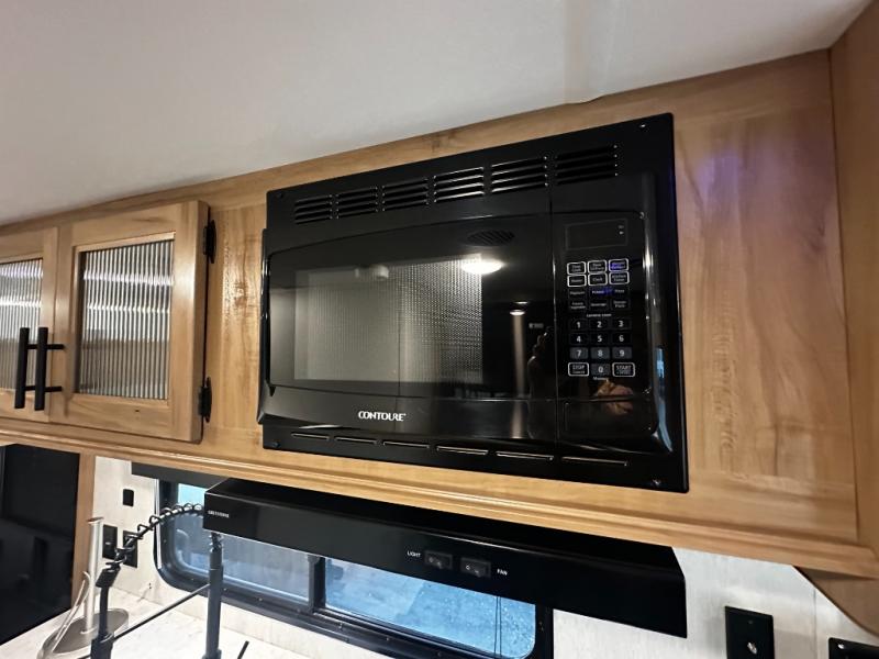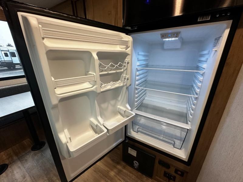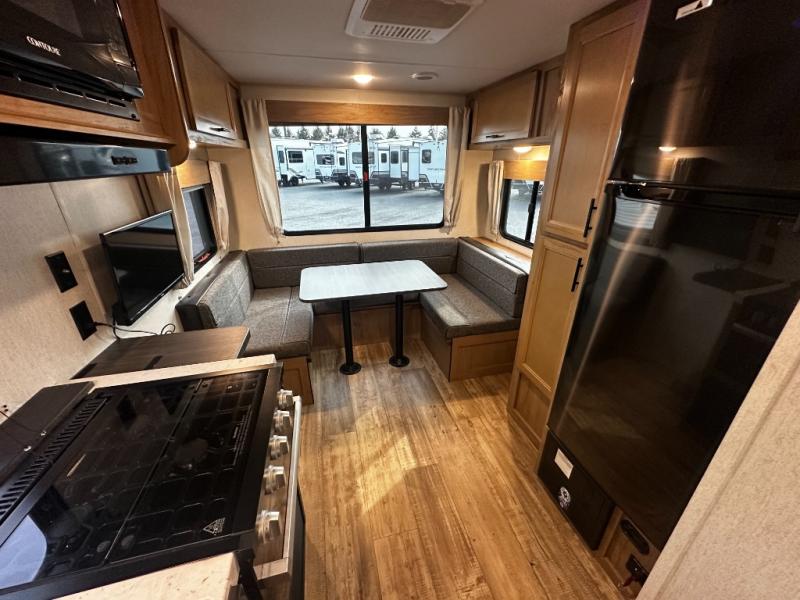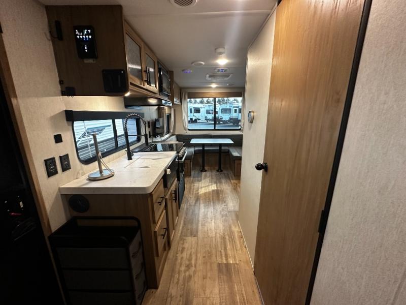 Step inside and enjoy a spacious rear dinette with panoramic windows, allowing you to take in the view while you dine or relax after a day of exploring. The well-equipped kitchen includes a large sink, microwave, refrigerator, and plenty of counter space for meal prep. The cozy sleeping area and ample storage throughout make this trailer an ideal home-on-wheels. With its thoughtful layout, efficient use of space, and residential-style finishes, the Cherokee Grey Wolf 20RDSE is built to keep you comfortable on every journey.