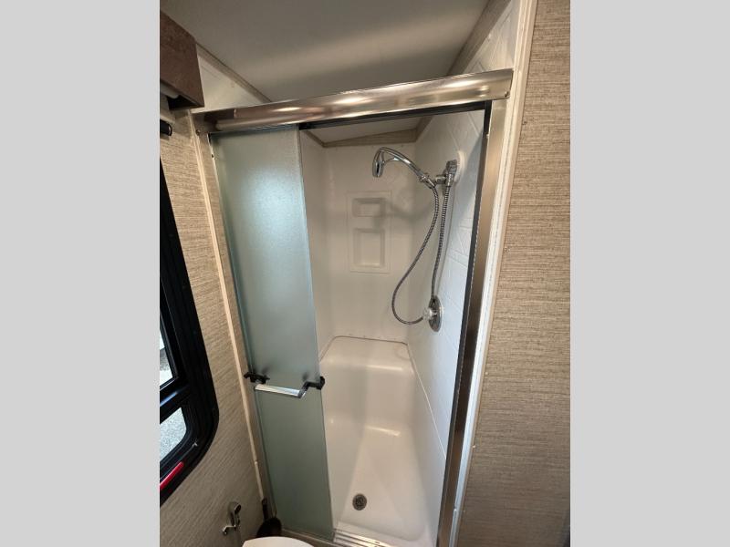 You can bet that the bunk beds on this Forza Class A diesel motorhome are going to be a big draw for your kids! Add the optional Studio Loft drop-down bed and you've instantly got more sleeping space. The master suite that has its own full bathroom is certainly going to entice you! Not only is there a full bathroom back in the master suite, but there is also a second full bathroom out in the main living area so that everyone else can have a place to get ready each morning too. The reclining/swivel cab seats are helpful because they add more lounge space to the main living area, and the TrueComfort+ sofa with lap table is right across from the fireplace and 50" HDTV for easy viewing. You will also have a fully equipped kitchen with plenty of tools to make your famous dinners for everyone.