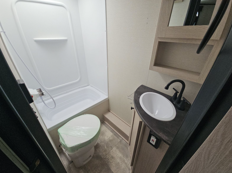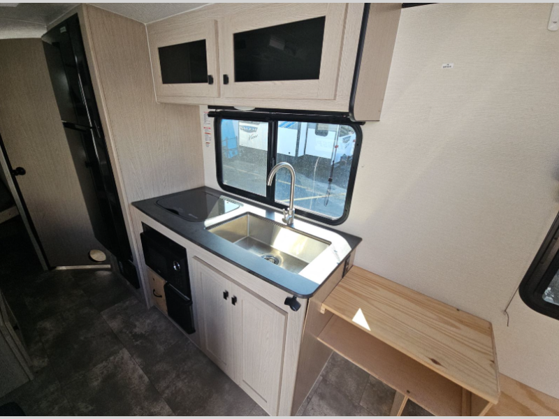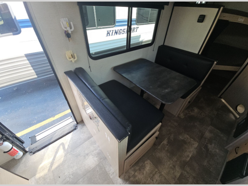 This travel trailer offers versatility with a front Murphy bed! Depending on what time of day you enter the unit will determine whether you see the bed or the sofa. There is a rear corner double bed bunk above a lower flip up double bed and a booth dinette that can transform into an extra sleeping space when you're not using it to enjoy a meal or play a card game. Everyone can stay clean with tub/shower in the rear corner bathroom and keep their bellies full with the two burner cooktop and 6 cu. ft. gas/electric refrigerator. You can even cook outdoors with the exterior camp kitchen while staying protected by the power awning with LED lighting!