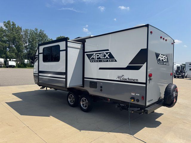 You will find comfort, convenience, and a sturdy construction with each of these Coachmen RV Apex Nano travel trailers! They are held together with an aluma-cage construction, vacuum-bonded Azdel fiberglass walls, an I-beam chassis, and a roof membrane with Dicor Crossflex, plus the powder coated frame is corrosion resistant. The Dexter E-Z lube axles and nitrogen filled radial tires will help you arrive safely. The mandatory Nano package comes with many features to make camp life better like magnetic baggage door catches, outside speakers, a digital TV antenna with cable hook-ups and WiFi capability, and a hot/cold outside shower to keep the dirt outside where it belongs. Come find the perfect model that fits your needs today!