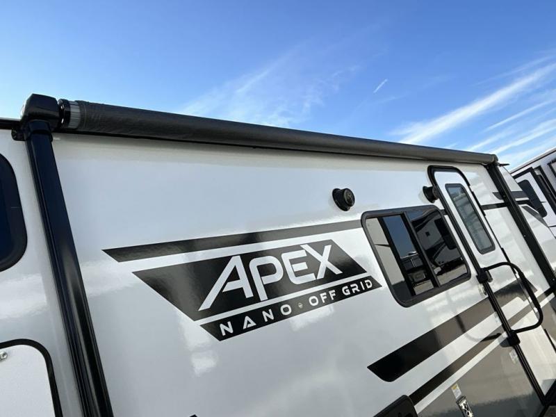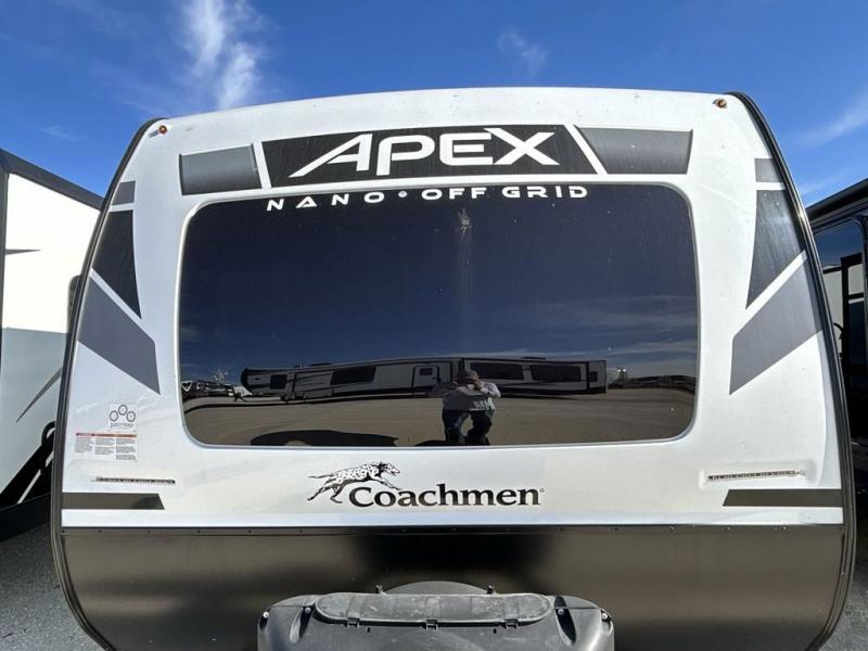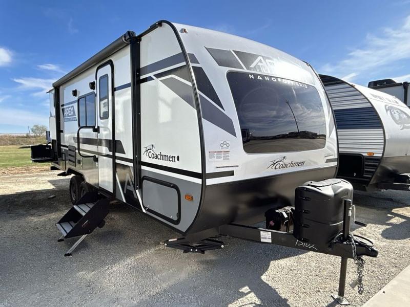 You will find comfort, convenience, and a sturdy construction with each of these Coachmen RV Apex Nano travel trailers! They are held together with an aluma-cage construction, vacuum-bonded Azdel fiberglass walls, an I-beam chassis, and a roof membrane with Dicor Crossflex, plus the powder coated frame is corrosion resistant. The Dexter E-Z lube axles and nitrogen filled radial tires will help you arrive safely. The mandatory Nano package comes with many features to make camp life better like magnetic baggage door catches, outside speakers, a digital TV antenna with cable hook-ups and WiFi capability, and a hot/cold outside shower to keep the dirt outside where it belongs. Come find the perfect model that fits your needs today!