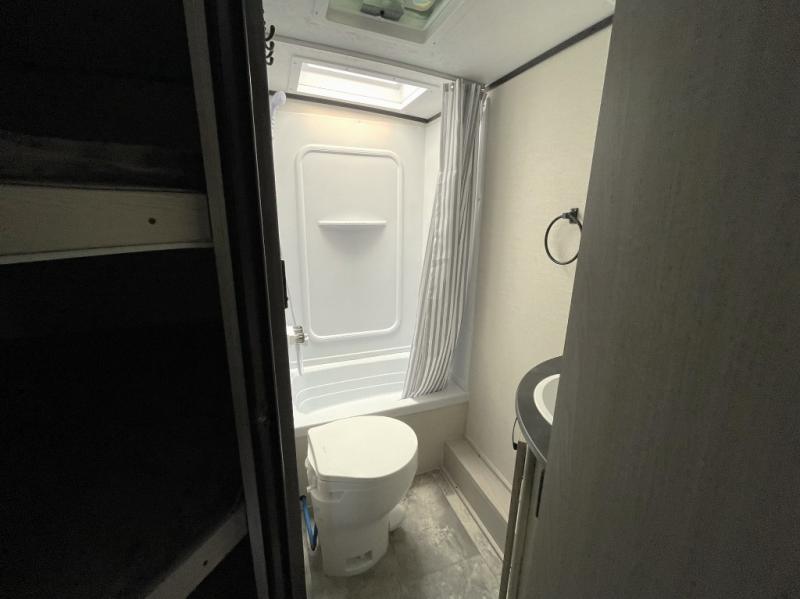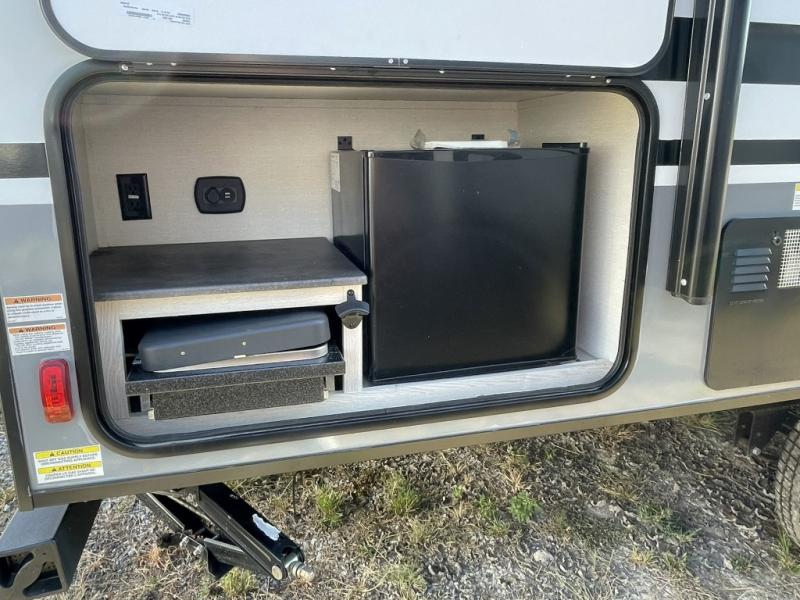 Enjoy must-have conveniences like magnetic baggage doors, outside speakers, a WiFi-ready digital TV antenna, and an exterior hot and cold shower. Whether youre heading to the mountains or the lake, this trailer is ready to take you there in comfort and style.
