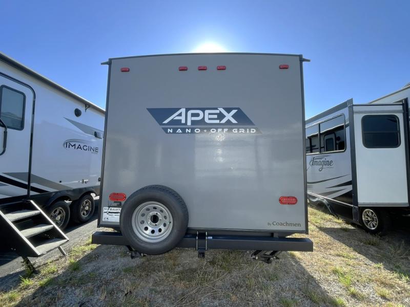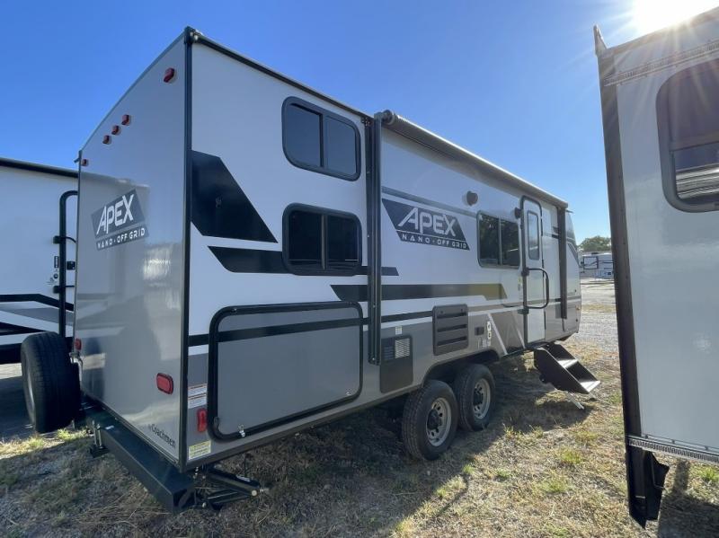 Built with durability in mind, the Apex Nano features lightweight yet strong aluma-cage construction, vacuum-bonded Azdel sidewalls, a corrosion-resistant powder coated frame, and a roof membrane designed to withstand the elements. Towing is smooth and stable with Dexter E-Z lube axles and nitrogen-filled radial tires.