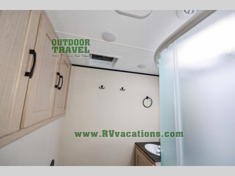 Lightweight living and camping is found with the Apex Ultra-Lite travel trailers by Coachmen. These eco-friendly units are made to last thanks to the Azdel composite sidewalls, the laminated aluminum floor, and the vacuum-bonded laminated crowned roof. Lippert axles and nitrogen filled radial tires make towing easier than ever, plus there is a friction hinge entrance door, a 100-watt solar panel with a 10 Amp control charger, and slam latch baggage door catches for easy unloading. Some of the interior comforts you'll fall in love with are the one-piece seamless edge countertops, the hard valances with night shades throughout, the matte black hardware, and the residential comforter. The Apex Ultra-Lite trailers also include USB ports, a digital TV antenna with cable hook-ups and Wi-Fi capability, and an AM/FM stereo with Bluetooth to ensure you'll never be bored on rainy camp days!