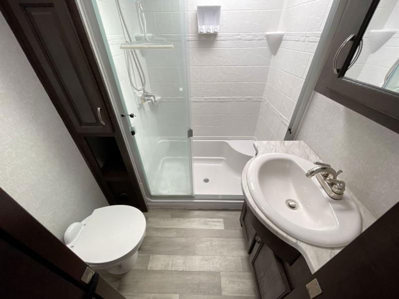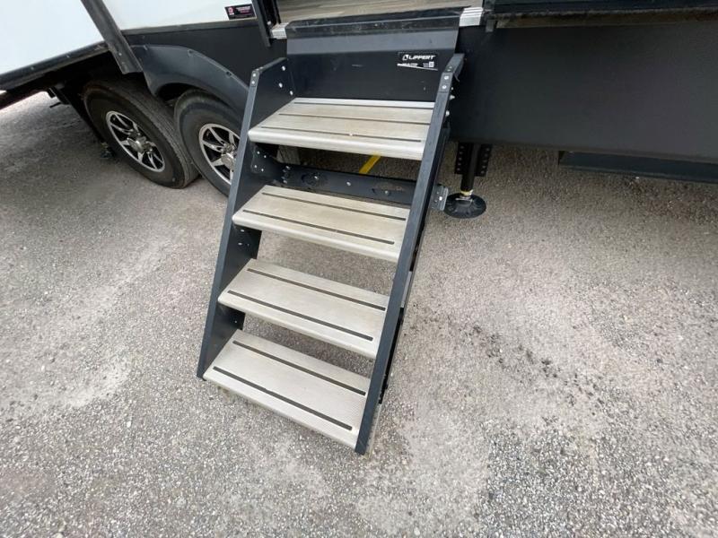 The Brookstone fifth wheels by Coachmen are coming to you with wide-body comfort, home-like amenities, and unique designs for a truly luxurious RV. The 4 Season Protection Package includes double batten insulated roof with radiant barrier insulation, Weather Shield+, a 40,000 BTU high capacity furnace, and more that will help you extend your camping season or go full-time. The frameless automotive-style windows feature 80% privacy tint safety glass, and the vacuum bonded and aluminum framed sidewalls with rot proof Azdel will provide durability. Head inside to find solid hardwood drawers, granite/marble style solid surface countertops in the kitchen, a residential bed with a pillow top mattress and full storage underneath, and the list of comforts goes on! The Brookstone also includes 6-point electric auto-leveling, marine-grade exterior speakers with an LED light, four Solid Step entry steps, and many more exterior conveniences!