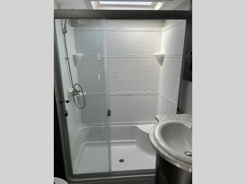 The Brookstone fifth wheels by Coachmen are coming to you with wide-body comfort, home-like amenities, and unique designs for a truly luxurious RV. The 4 Season Protection Package includes double batten insulated roof with radiant barrier insulation, Weather Shield+, a 40,000 BTU high capacity furnace, and more that will help you extend your camping season or go full-time. The frameless automotive-style windows feature 80% privacy tint safety glass, and the vacuum bonded and aluminum framed sidewalls with rot proof Azdel will provide durability. Head inside to find solid hardwood drawers, granite/marble style solid surface countertops in the kitchen, a residential bed with a pillow top mattress and full storage underneath, and the list of comforts goes on! The Brookstone also includes 6-point electric auto-leveling, marine-grade exterior speakers with an LED light, four Solid Step entry steps, and many more exterior conveniences!