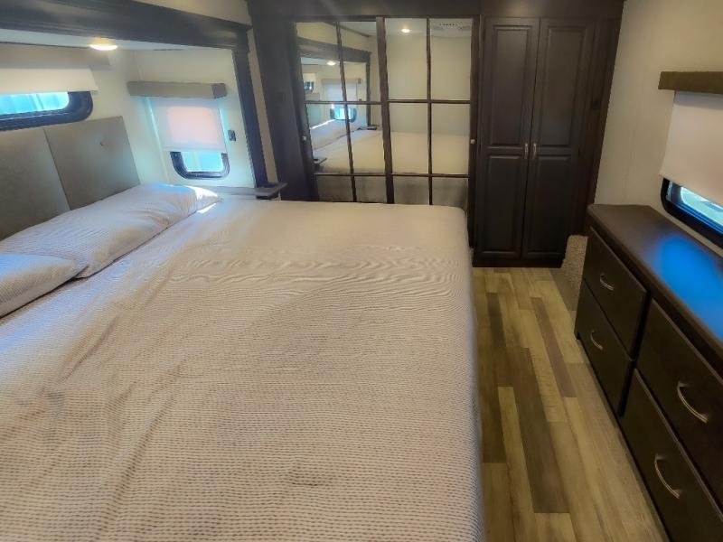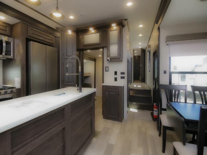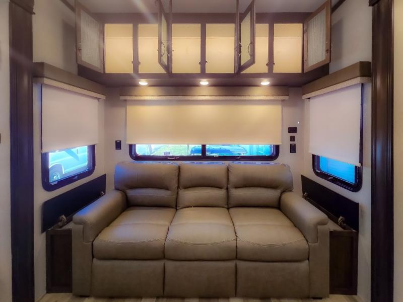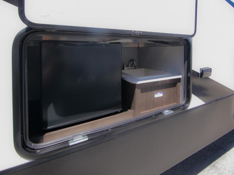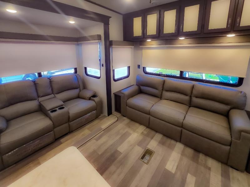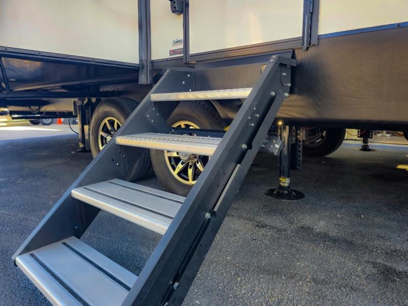 The Brookstone fifth wheels by Coachmen are coming to you with wide-body comfort, home-like amenities, and unique designs for a truly luxurious RV. The 4 Season Protection Package includes double batten insulated roof with radiant barrier insulation, Weather Shield+, a 40,000 BTU high capacity furnace, and more that will help you extend your camping season or go full-time. The frameless automotive-style windows feature 80% privacy tint safety glass, and the vacuum bonded and aluminum framed sidewalls with rot proof Azdel will provide durability. Head inside to find solid hardwood drawers, granite/marble style solid surface countertops in the kitchen, a residential bed with a pillow top mattress and full storage underneath, and the list of comforts goes on! The Brookstone also includes 6-point electric auto-leveling, marine-grade exterior speakers with an LED light, four Solid Step entry steps, and many more exterior conveniences!