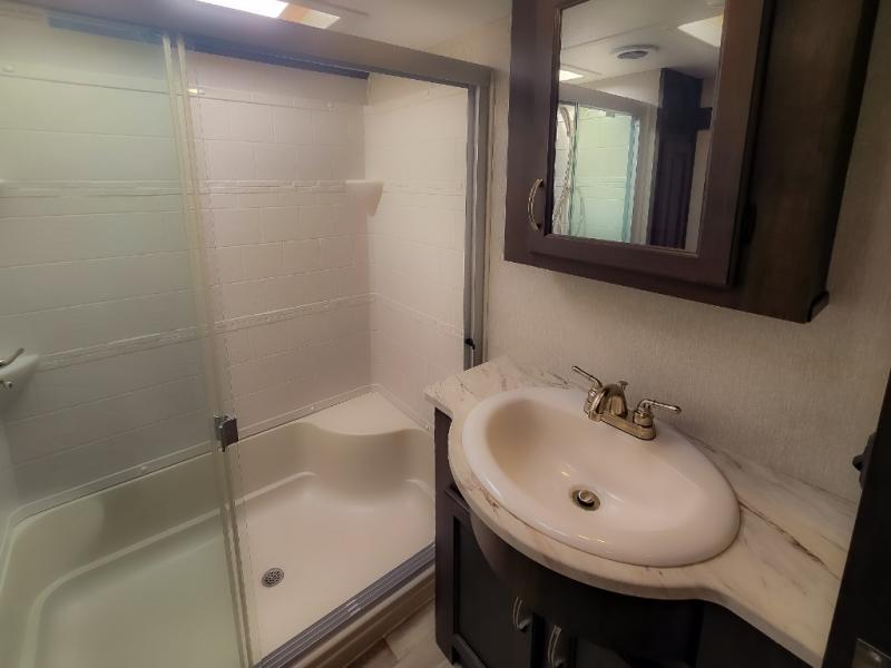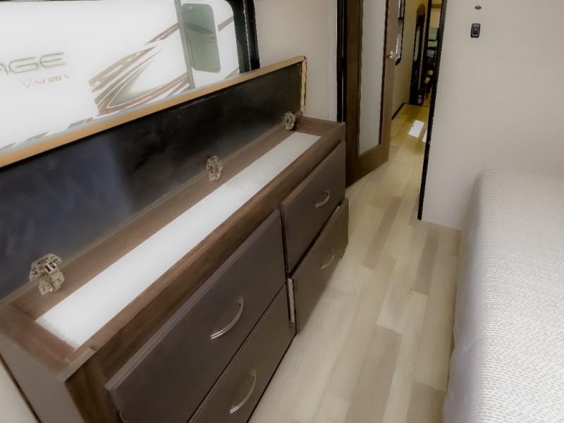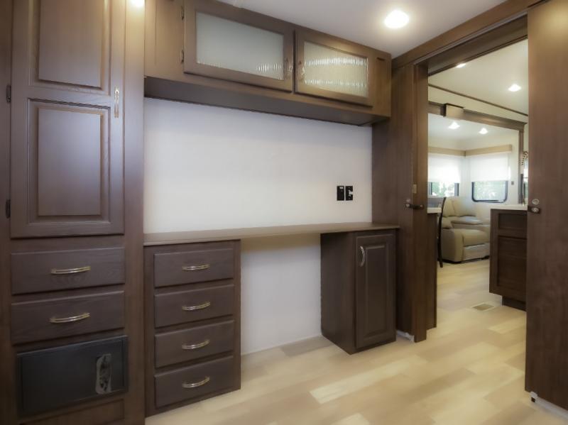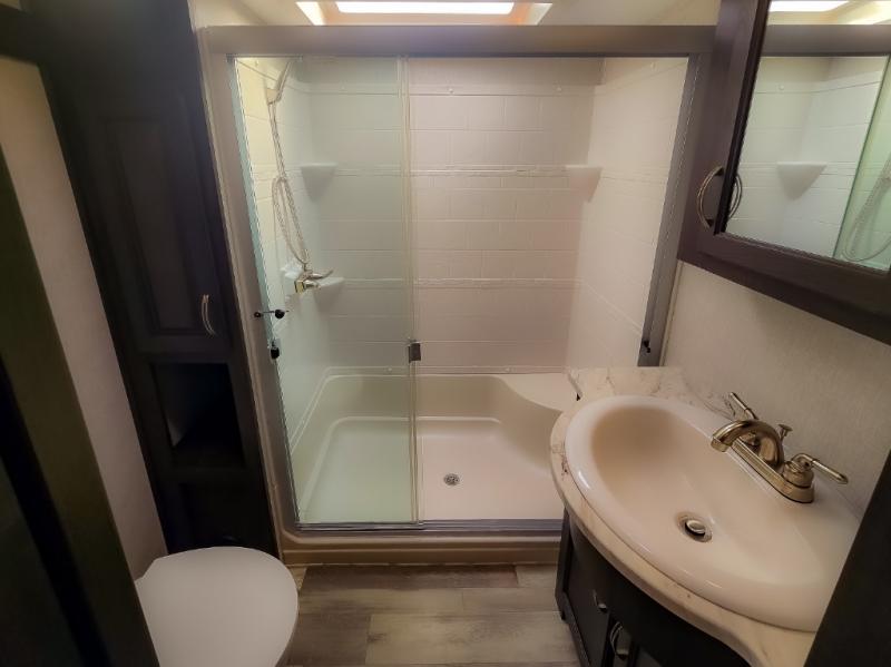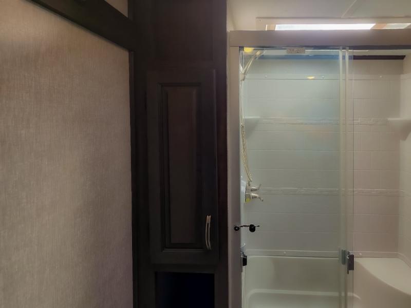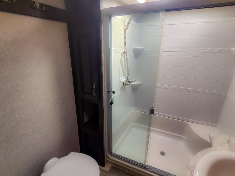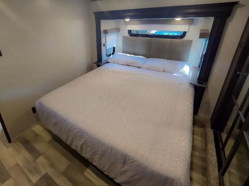 The Brookstone fifth wheels by Coachmen are coming to you with wide-body comfort, home-like amenities, and unique designs for a truly luxurious RV. The 4 Season Protection Package includes double batten insulated roof with radiant barrier insulation, Weather Shield+, a 40,000 BTU high capacity furnace, and more that will help you extend your camping season or go full-time. The frameless automotive-style windows feature 80% privacy tint safety glass, and the vacuum bonded and aluminum framed sidewalls with rot proof Azdel will provide durability. Head inside to find solid hardwood drawers, granite/marble style solid surface countertops in the kitchen, a residential bed with a pillow top mattress and full storage underneath, and the list of comforts goes on! The Brookstone also includes 6-point electric auto-leveling, marine-grade exterior speakers with an LED light, four Solid Step entry steps, and many more exterior conveniences!
