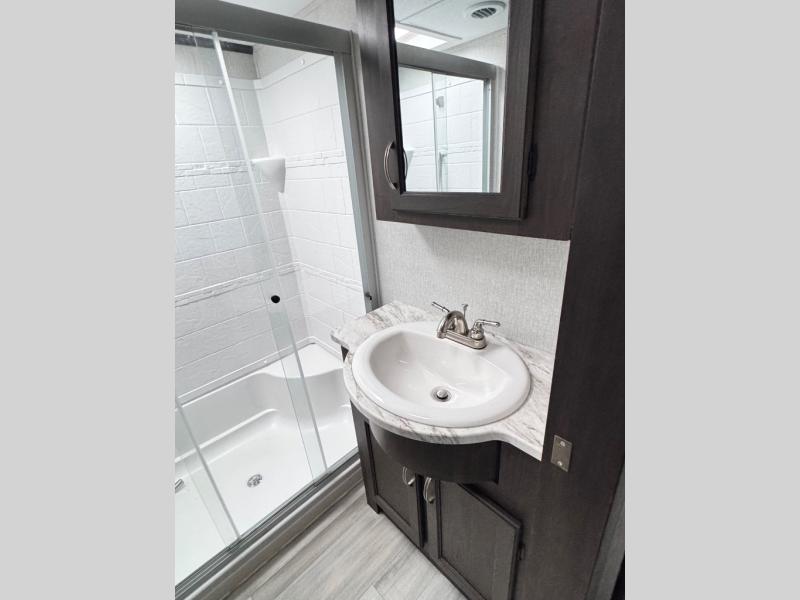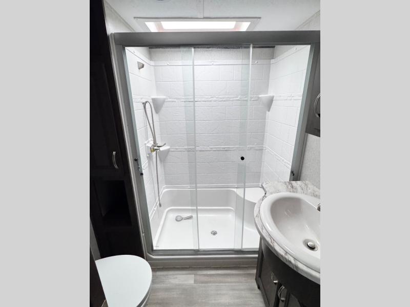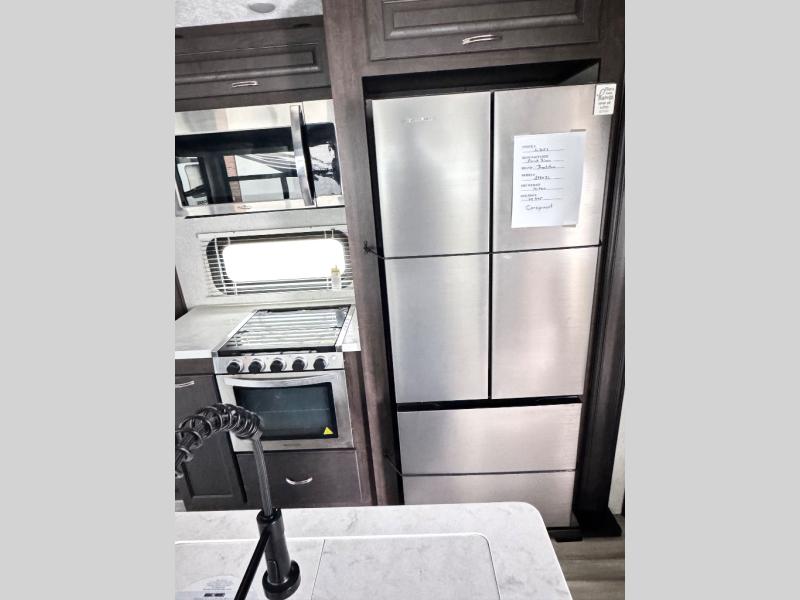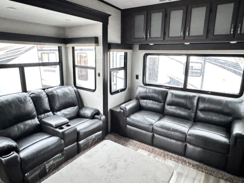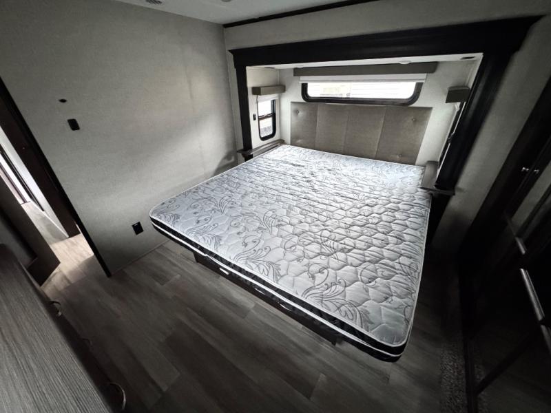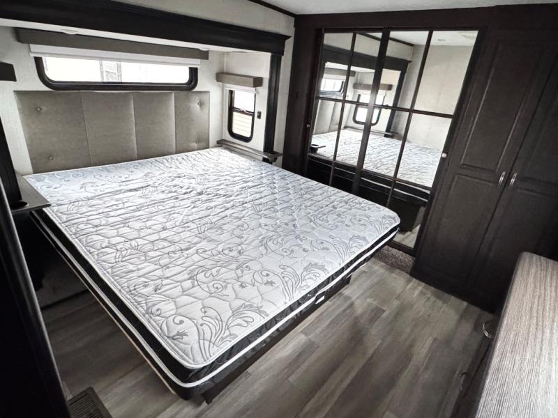 The Brookstone fifth wheels by Coachmen are coming to you with wide-body comfort, home-like amenities, and unique designs for a truly luxurious RV. The 4 Season Protection Package includes double batten insulated roof with radiant barrier insulation, Weather Shield+, a 40,000 BTU high capacity furnace, and more that will help you extend your camping season or go full-time. The frameless automotive-style windows feature 80% privacy tint safety glass, and the vacuum bonded and aluminum framed sidewalls with rot proof Azdel will provide durability. Head inside to find solid hardwood drawers, granite/marble style solid surface countertops in the kitchen, a residential bed with a pillow top mattress and full storage underneath, and the list of comforts goes on! The Brookstone also includes 6-point electric auto-leveling, marine-grade exterior speakers with an LED light, four Solid Step entry steps, and many more exterior conveniences!