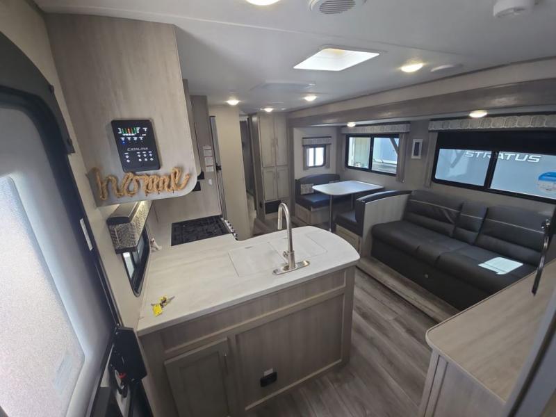 Each Catalina Legacy travel trailer by Coachmen is constructed with a cambered structural steel I-beam frame for added strength and support, plus an enclosed and fully sealed corrugated underbelly to extend your camping season. There is also a seamless Alpha room membrane, R-7 insulation throughout, full length frame outriggers, plus many more durable construction materials. You will love the 6' 9" interior height, along with Congoleum woodplank linoleum flooring, seamless Thermofoil countertops, and hard valance window treatments. There is an RV-Link 4G LTE connectivity with WiFi booster and an extender to keep you connected to the outside world as you camp, and the JBL Aura cube multi-zone function media center is sure to keep you entertained all weekend long. Choose a Catalina Legacy today!