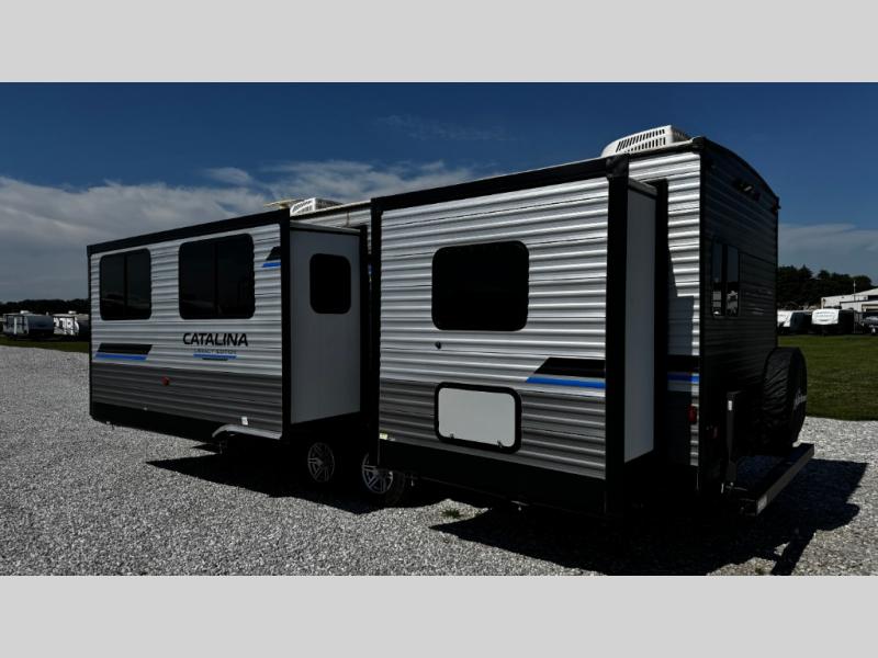 Each Catalina Legacy travel trailer by Coachmen is constructed with a cambered structural steel I-beam frame for added strength and support, plus an enclosed and fully sealed corrugated underbelly to extend your camping season. There is also a seamless Alpha room membrane, R-7 insulation throughout, full length frame outriggers, plus many more durable construction materials. You will love the 6' 9" interior height, along with Congoleum woodplank linoleum flooring, seamless Thermofoil countertops, and hard valance window treatments. There is an RV-Link 4G LTE connectivity with WiFi booster and an extender to keep you connected to the outside world as you camp, and the JBL Aura cube multi-zone function media center is sure to keep you entertained all weekend long. Choose a Catalina Legacy today!
