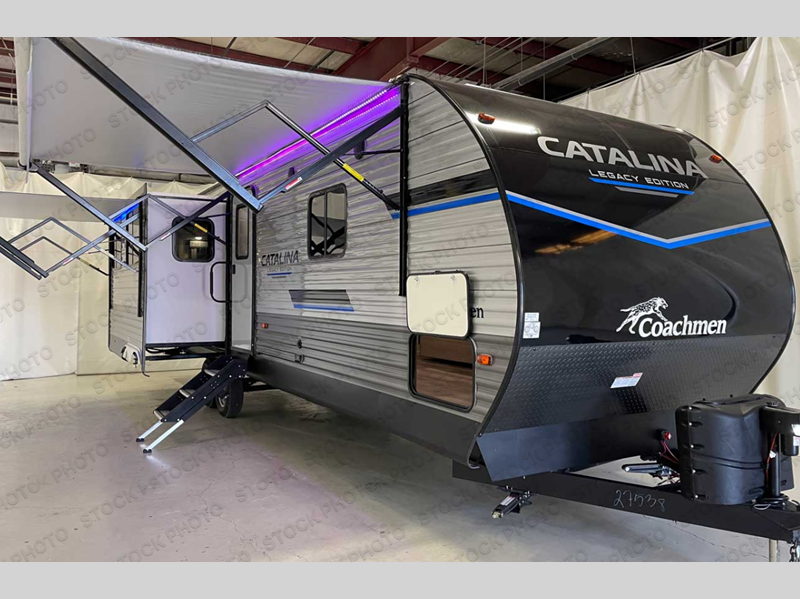 Each Catalina Legacy travel trailer by Coachmen is constructed with a cambered structural steel I-beam frame for added strength and support, plus an enclosed and fully sealed corrugated underbelly to extend your camping season. There is also a seamless Alpha room membrane, R-7 insulation throughout, full length frame outriggers, plus many more durable construction materials. You will love the 6' 9" interior height, along with Congoleum woodplank linoleum flooring, seamless Thermofoil countertops, and hard valance window treatments. There is an RV-Link 4G LTE connectivity with WiFi booster and an extender to keep you connected to the outside world as you camp, and the JBL Aura cube multi-zone function media center is sure to keep you entertained all weekend long. Choose a Catalina Legacy today!
