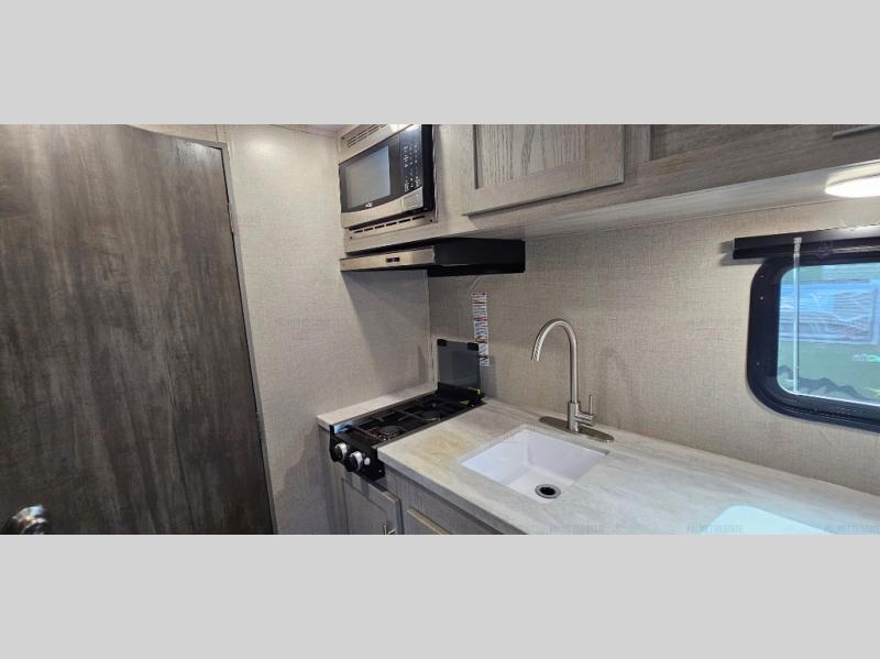 With any Catalina Summit Series 7' by Coachmen RV, you can create an easier adventure with the versatility and simplicity of the shorter lengths and lighter weights! Each includes a premium exterior graphics package, a smooth HD aluminum radius front, and Dexter EZ lube axles with leaf spring suspension. The exterior offers a heavy duty standard tongue jack, a diamond plate rock guard to protect against road debris, exterior RG-6 coax cabling and satellite prep, rear view camera prep, and flush mount baggage doors with radius corners for your outdoor gear. Inside, you will enjoy premium JBL interior speakers, USB charging ports, seamless Thermofoil countertops throughout, an under-mount farm style sink for easy cleanup, and a Slim Line range hood to keep the cooking smells outside. It's time to choose an affordable and maneuverable single axle trailer today!