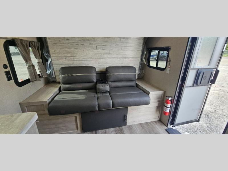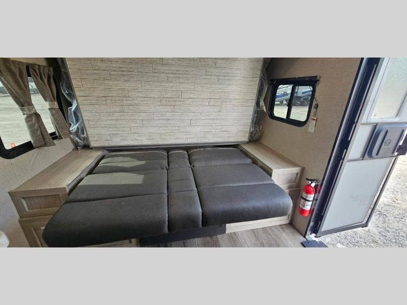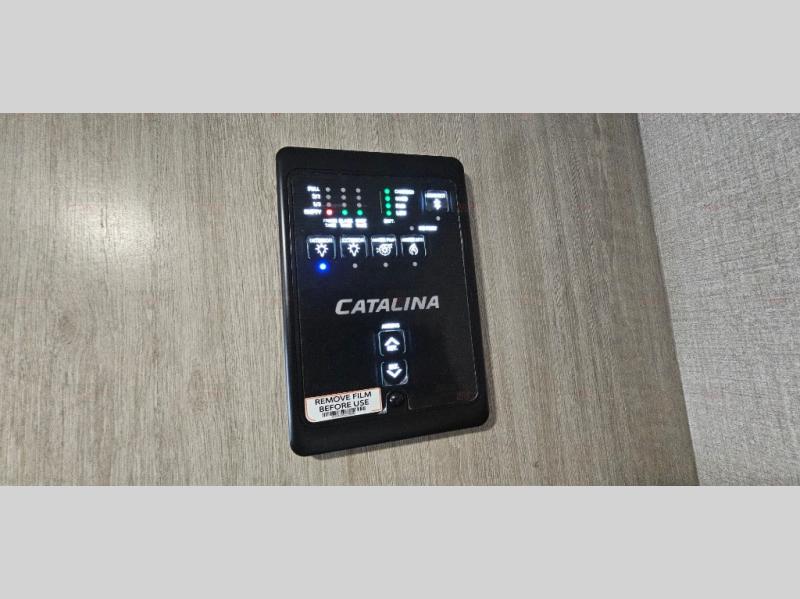 Camping for two, anyone? This cute Catalina Summit Series 7 is the perfect camper that provides you with both a living space and a sleeping space all while keeping it under 20'. This unit comes in at 19' 6" to be exact, and with the 60" x 74" Murphy bed layout you can have both a comfortable place to sleep at night, and during the day it's all tucked away behind a wall and a sofa sits in its place. You don't even have to make the bed! A rear bath offers a 36" x 30" shower, toilet, and linen cabinet for your towels and toiletries. The sink is just outside the bathroom door on your left. For cooking inside, you will have a two burner cooktop and a microwave oven, plus plenty of solid surface countertop prep space. On the outside, a 10' power awning with multicolored LED light strip will make a wonderful outdoor living space to enjoy both during the day and at night keeping you protected from the elements. And, the large front pass-through storage space allows you to take along all of your necessities to have a great time.