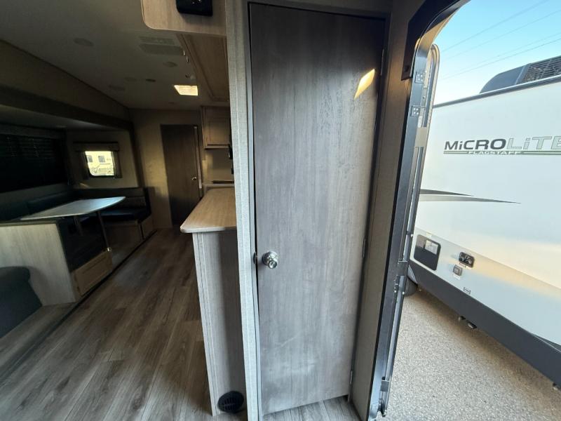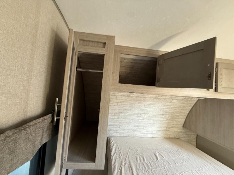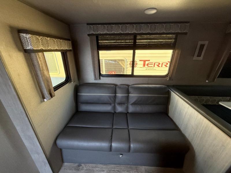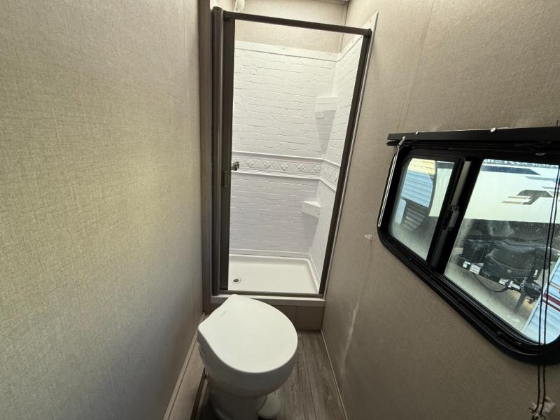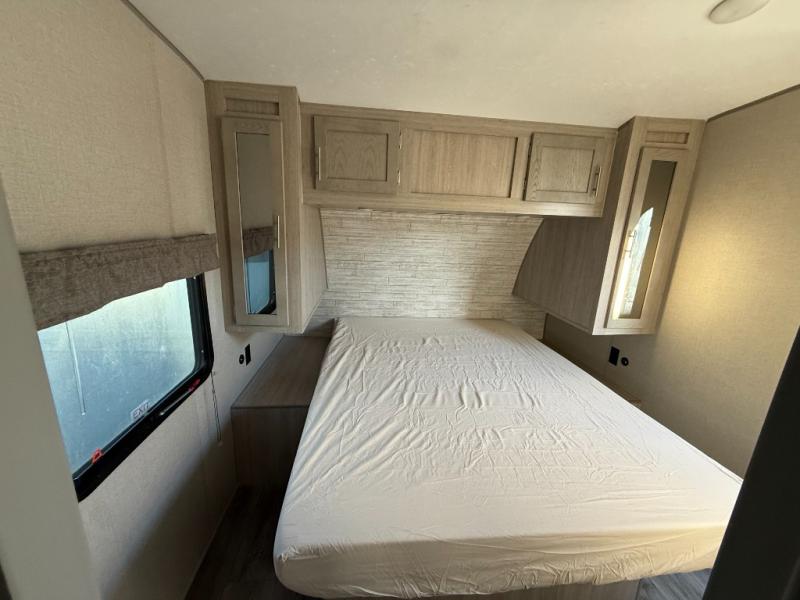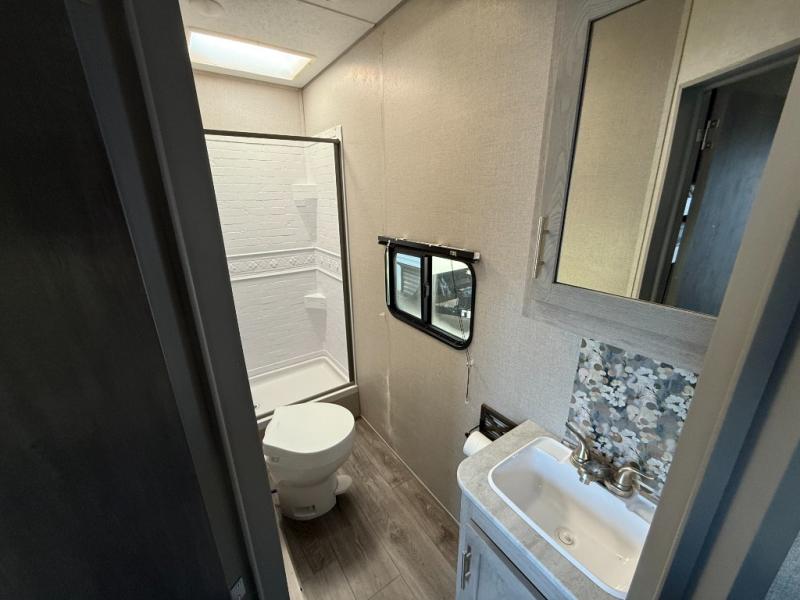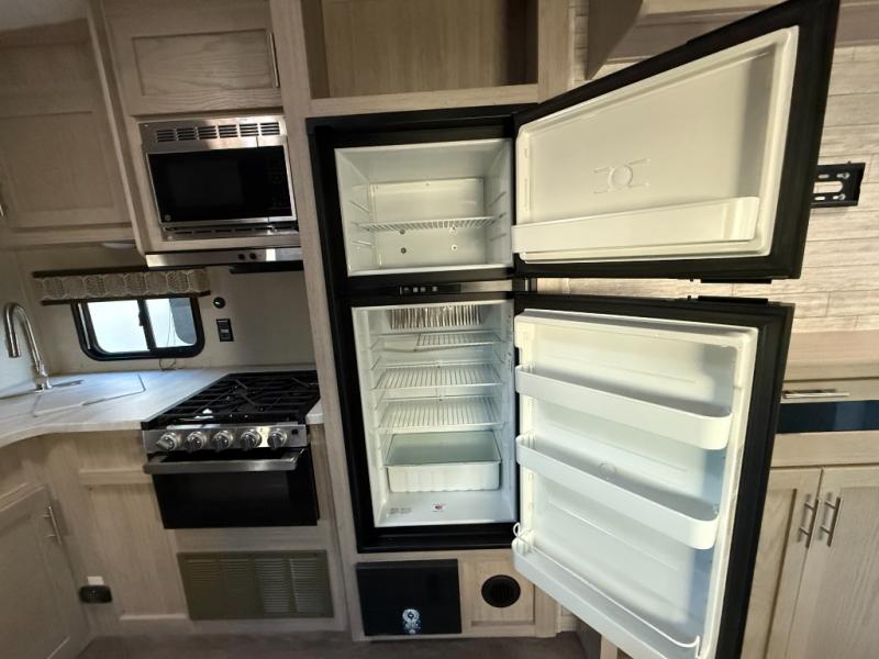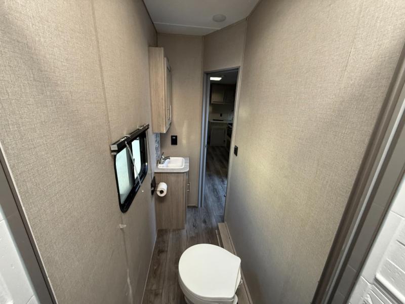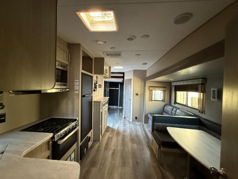 The best looking, most affordable toy hauler is found in the Catalina Trailer Blazer by Coachmen. Each one is constructed with a seamless alpha roof membrane, an enclosed and fully sealed underbelly, and a cambered structural steel I-beam frame for added support. There is a rear loading cargo door with a 3,000 lb. capacity, a black out screen wall with a zip walk-thru and windows, plus 500 lb. tie-downs to secure your toys. You'll love the interior with its Congoleum woodplank linoleum flooring, pleated night shades, and LED interior lighting. Head outside to find an electric awning with multicolored LED lights and a remote, a 15' Toy Loc cable, a "Leash Link" quick hookup D-ring for pets, and upgraded aluminum wheels. The Catalina Trail Blazer also comes with RV-LINK 4G LTE connectivity with a WiFi booster and extender, a JBL Aura Cube media center, plus premium JBL interior speakers to ensure you'll never go bored!