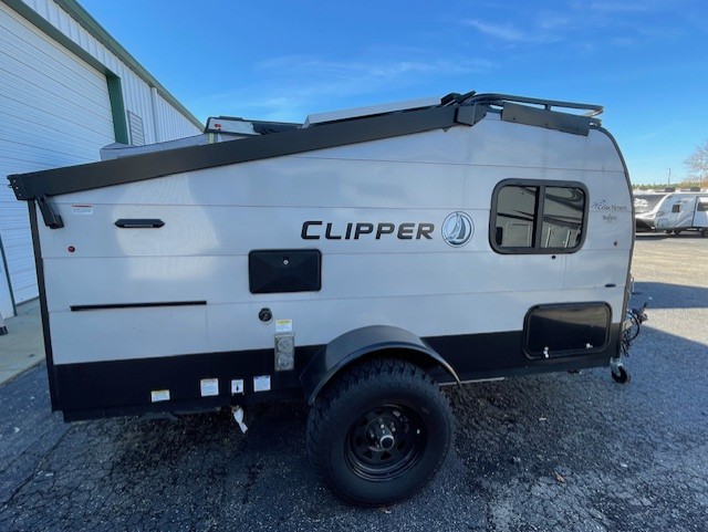 The Clipper teardrop campers by Coachmen are your ticket to fun and adventure. They are easy to tow, easy to store, and easy to love! You'll appreciate stabilizer jacks to keep your camper secure at the campground, plus exterior storage and a spare tire for more convenience. Aqua-Shield tenting material also comes standard, along with steel rims, electric brakes, and an E-coated tubular steel frame for added strength and durability.