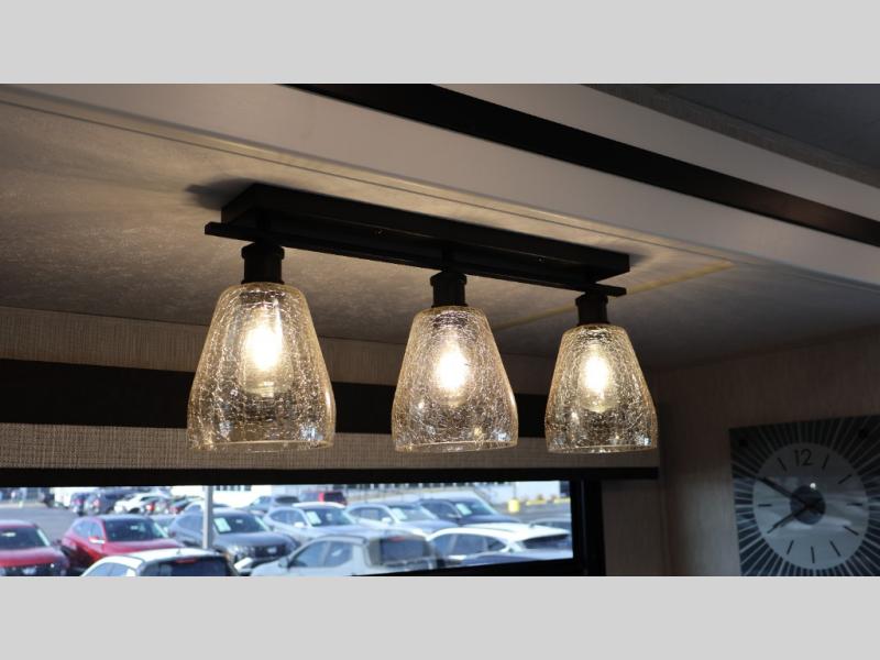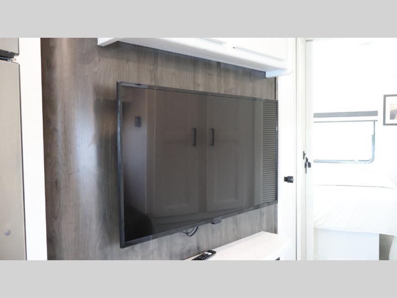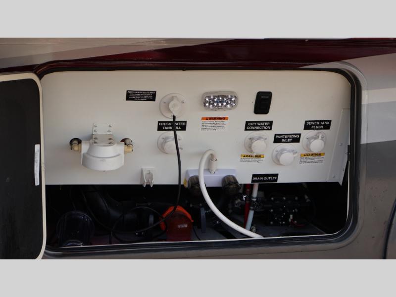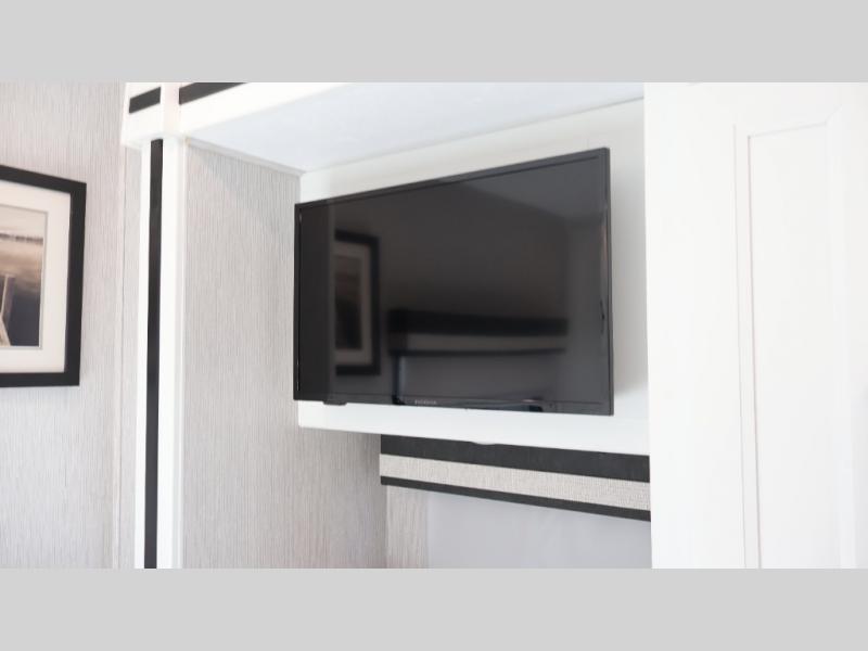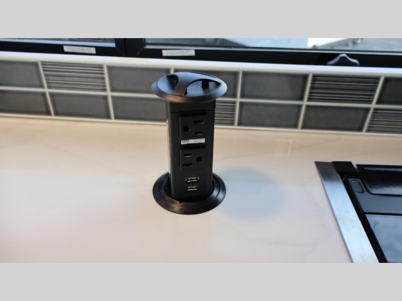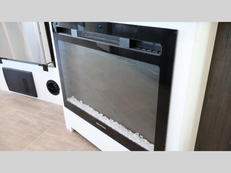 Experience a comfortable trip every time in this motorhome! It features a rear private bedroom with a 70" x 74" king bed including a storage system, a CPAP station above it, and opposite an LED TV above the dresser. Freshen up each morning in a full bathroom with a radius shower, and you can keep your clothes clean throughout your entire trip if you choose to add the optional stackable washer and dryer in the space opposite that has been prepped for it. The chef will have an easy time preparing their best meals indoors with a three burner cooktop, but can also enjoy cooking at the outside kitchen as well. The 42" x 76" booth dinette offers a comfortable place to enjoy your meals, and the 78" sofa with bed is conveniently across rom the LED TV and fireplace for a cozy evening indoors. Plus, you even have an exterior LED TV to watch the big game outdoors!