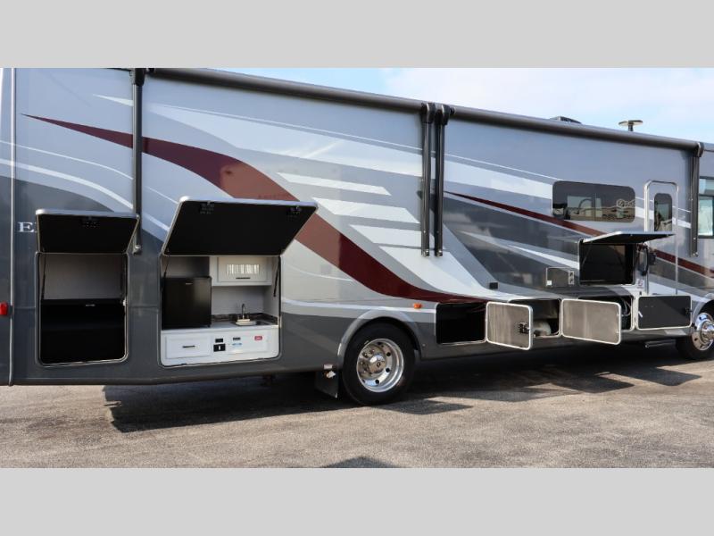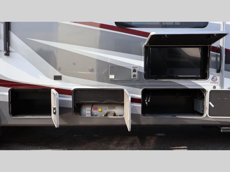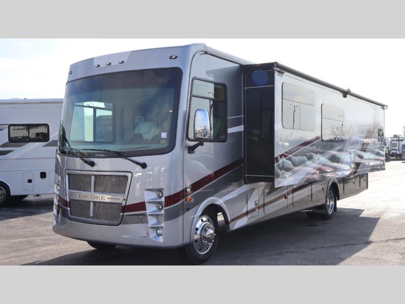 Each one of these Coachmen RV Encore Class A gas motorhomes have been engineered for maximum comfort! A Ford F53 chassis holds them together and a 7.3L V8 engine powers them to each destination. Both the crowned, laminated fiberglass roof and the high gloss gelcoat sidewalls come with Azdel superlite composite to prevent your unit from rotting away. Automatic leveling jacks make for an easy and quick set up when you arrive. You will appreciate having an exterior propane hookup and the pas-through full basement storage area has plenty of space for all of your outdoor gear, plus the radius trunk doors come with slam latch. With high definition back up and side cameras, you can travel with peace of mind. Come find your favorite one today!