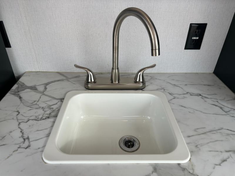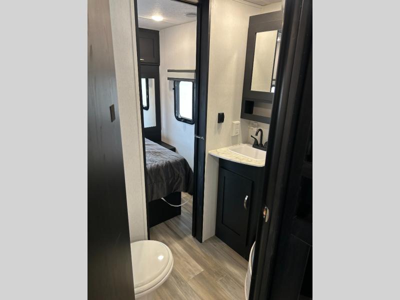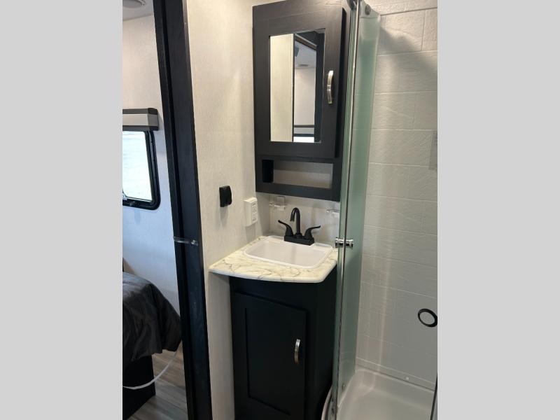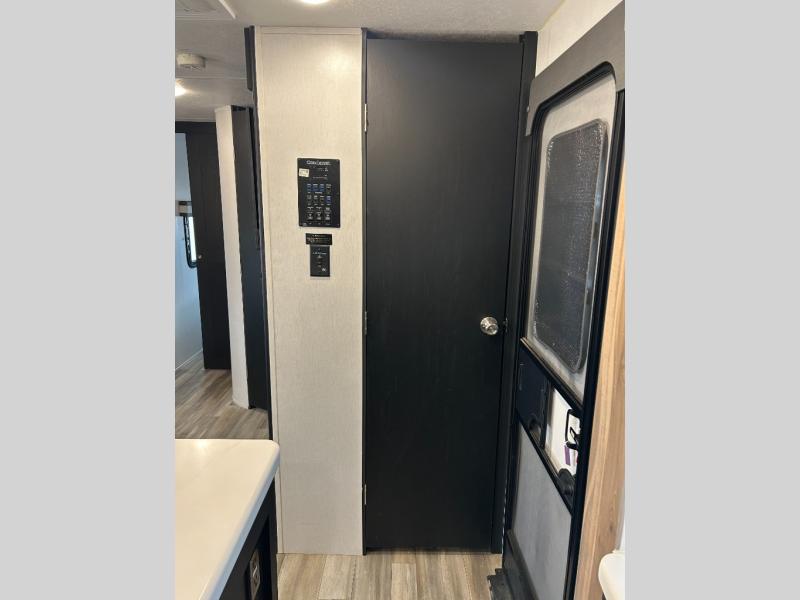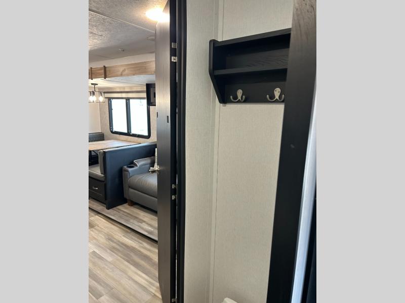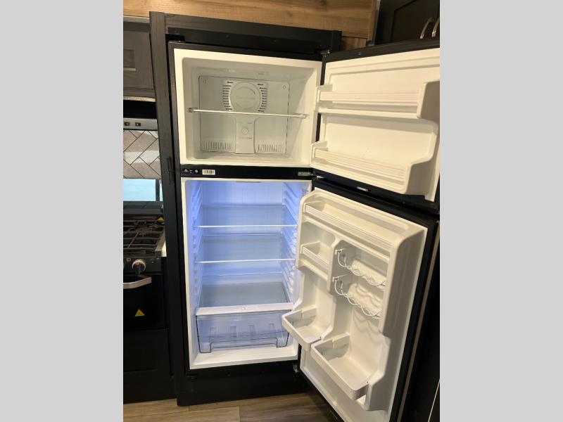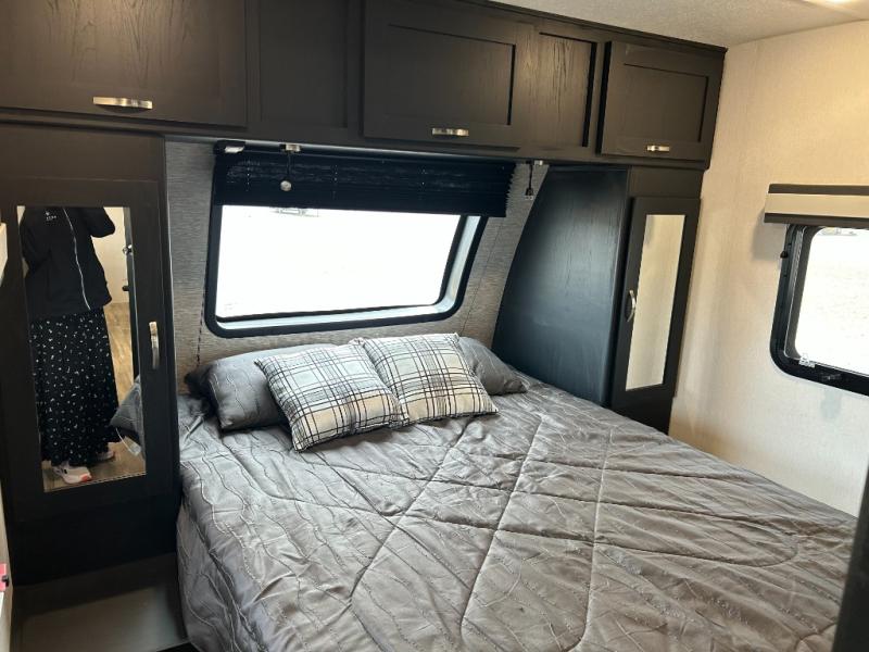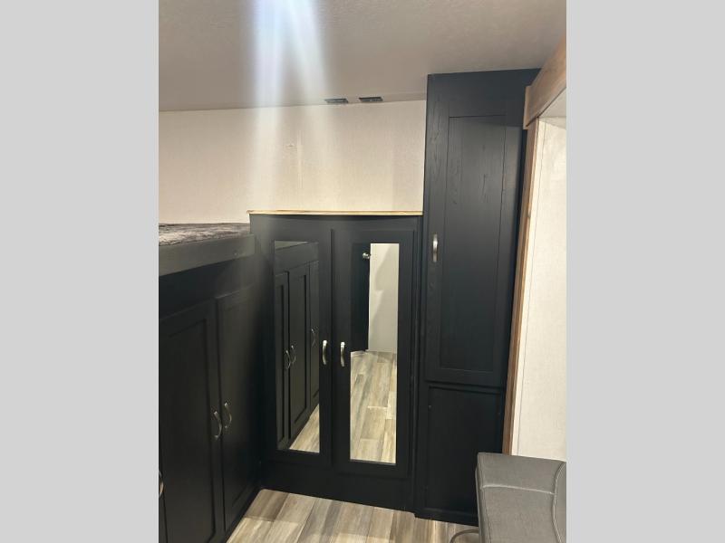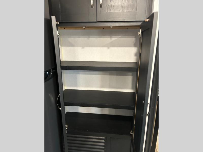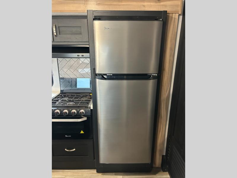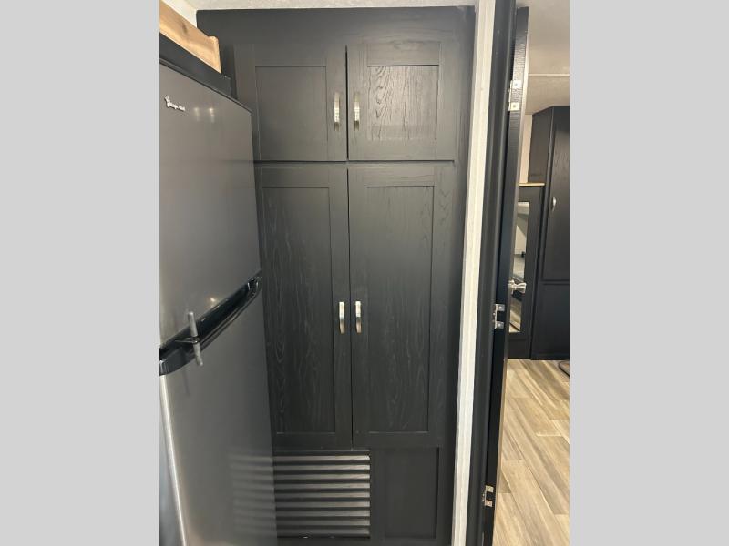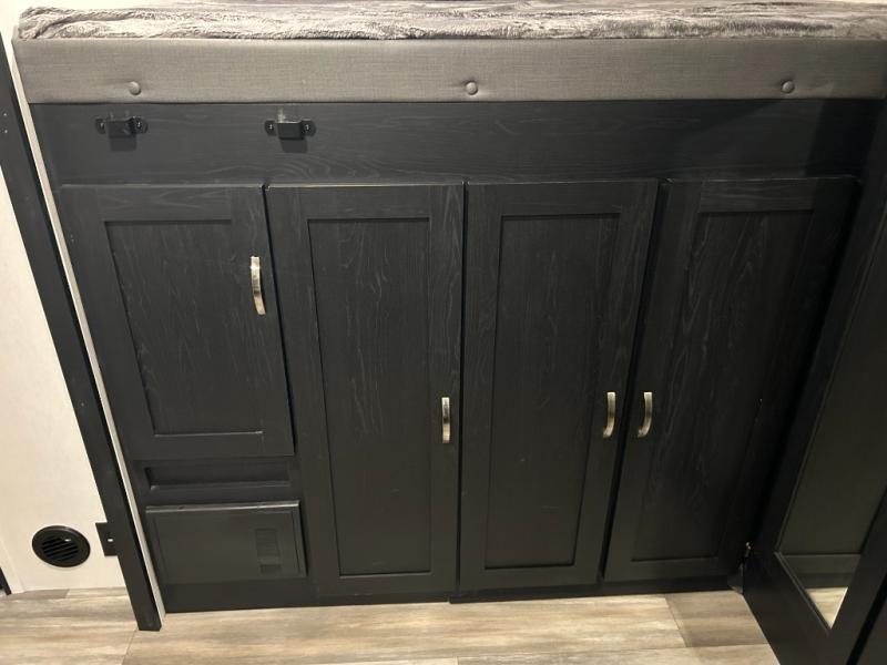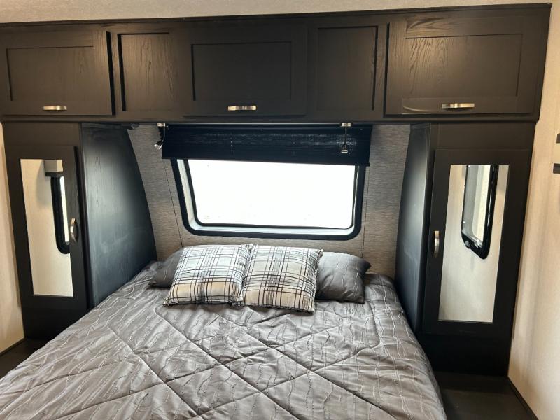 Load up and head out for camping with your favorite people in this triple slide trailer that is spacious, comfortable and inviting! The cook will love all their floor space while making meals thanks to the slide out with the kitchen appliances, the center island for serving meals and cleaning dishes, the pantry to stow all the goodies, and the choice to make meals using the full camp kitchen outside. The opposing slide in this area offers a booth dinette and a hide-a-bed sofa or choose a theater seat option instead. The LED TV and fireplace offer inside entertainment when you aren't outside relaxing under the 20' power awning. When it's time for bed, you can sleep on the queen bed in the front bedroom with vaulted underbed storage while the others sleep in the bunkhouse with a flip-up bunk, a roll-over sofa and/or the upper bunk.