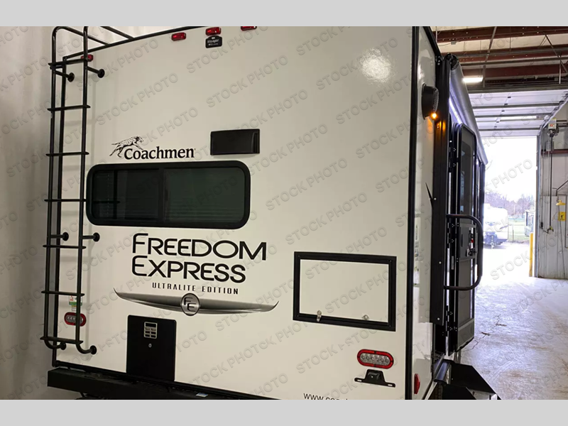 With any Freedom Express Ultra Lite travel trailer by Coachmen you will appreciate quality construction materials, such as vacuum bonded walls with Azdel composite, a 3/4 gel coated fiberglass cap with an automotive glass windshield, and a heated enclosed underbelly. Each model also features Tufflex PVC roofing, front diamond plate, and E-Z Lube axles for smooth towing. You'll find Carefree flooring indoors, as well as night shades, a dual basin American stonecast sink, and hidden hinge cabinetry. The power tongue jack included with the Ultra Lite Express Pack will make set-up a breeze, and each model includes back-up camera prep and they are Freedom solar ready if you plan to go off-grid. Enjoy lightweight camping with a Freedom Express Ultra Lite travel trailer today!