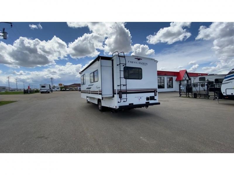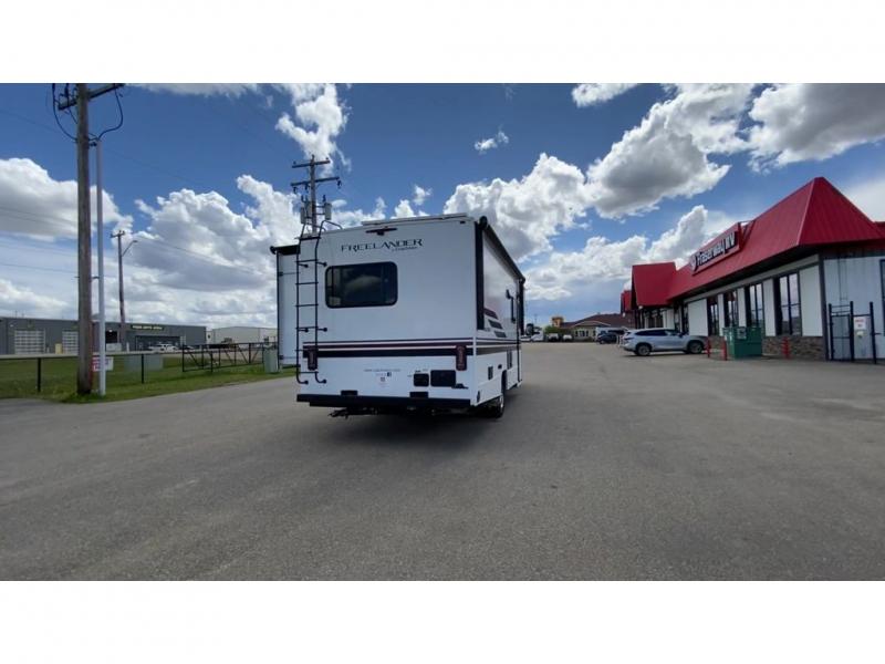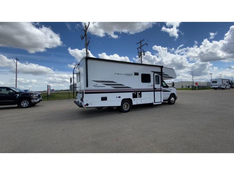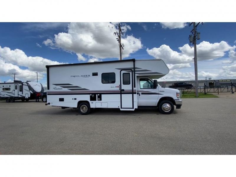 The Freelander Class C gas motorhome by Coachmen is a wonderful choice for anyone looking to get out on the road. A wide variety of floorplans and features offers something for everyone. The Azdel composite sidewalls and CrossFlex PVC polyester reinforced roof material provide a solid structure to enjoy all your trips. Conveniences like an over-door magazine rack with an HDMI and charge station and reclining cockpit seats are standard, along with a rear color backup camera, a premium showerhead and faucet, and one-piece thermofoil countertops. You might like to add the optional Platinum Edition that comes with sideview cameras, upgraded running boards, a convection microwave, and many more features!