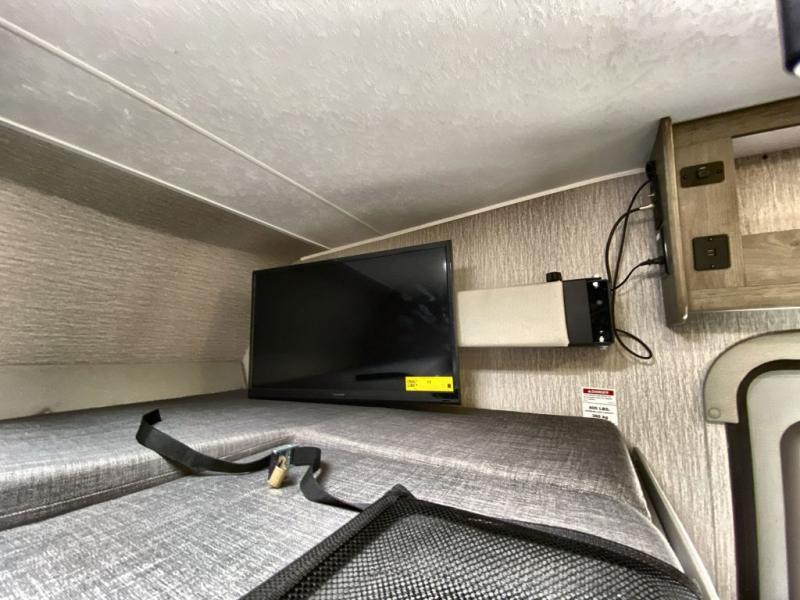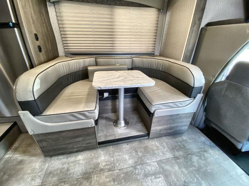 Enjoy a great escape in this motorhome! With a 60” x 80” queen bed and a 57” x 95” bunk over the cab, there’ll be plenty of space for everyone. Eat your meals at the spacious U-dinette or use it to spread out and play a board game once the dishes are cleared away. The kitchen rivals your home setup with a pantry, residential microwave, and stainless steel farmer's kitchen sink with a high-rise kitchen faucet. More storage is available in the bedroom with wardrobe shelves and a roomy underbed storage area. This model also includes the CRV Supersprings Ride with heavy duty stabilizer bars, chassis electronic stability control, SumoSprings front shock absorbers, and more!