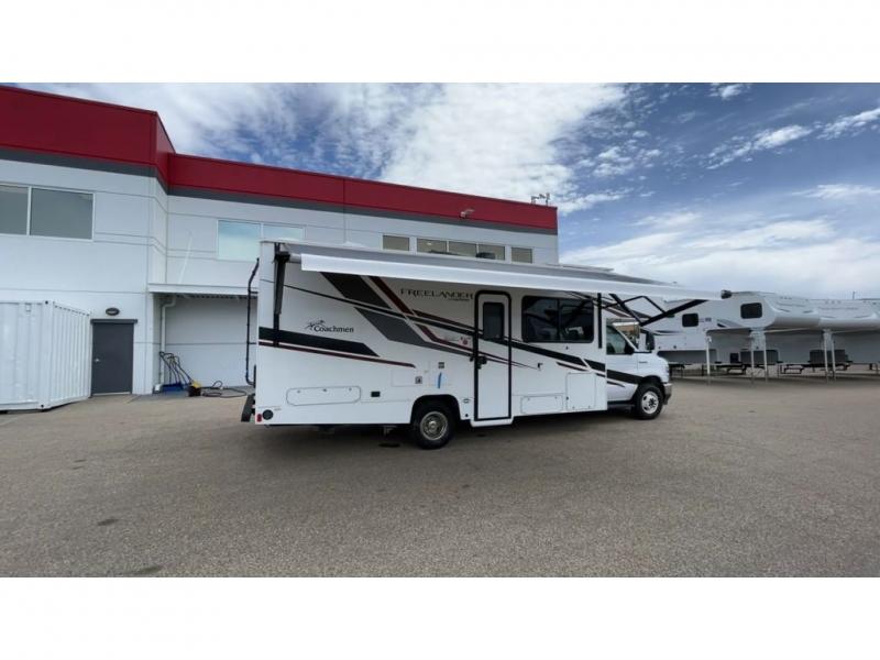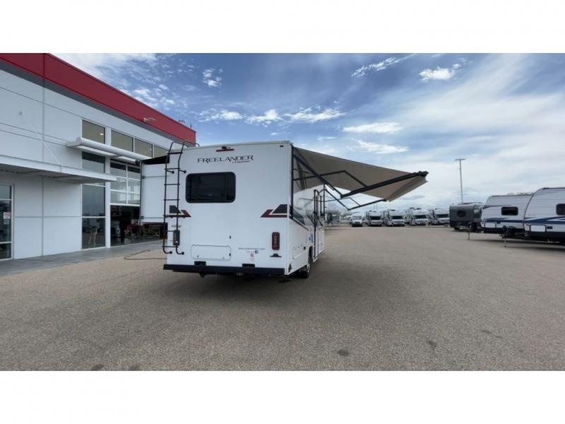 The Freelander Class C gas motorhome by Coachmen is a wonderful choice for anyone looking to get out on the road. A wide variety of floorplans and features offers something for everyone. The Azdel composite sidewalls and CrossFlex PVC polyester reinforced roof material provide a solid structure to enjoy all your trips. Conveniences like an over-door magazine rack with an HDMI and charge station and reclining cockpit seats are standard, along with a rear color backup camera, a premium showerhead and faucet, and one-piece thermofoil countertops. You might like to add the optional Platinum Edition that comes with sideview cameras, upgraded running boards, a convection microwave, and many more features!
