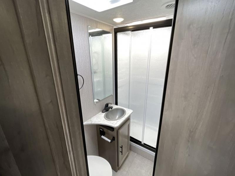 Two slide outs expand your vacation in this fun motorhome! Relax in the living area with a 62” sofa, or swap it out for optional recliners. The J-lounge dinette with 18” extension provides another space for leisure time or gourmet meals. The kitchen layout feels spacious with two pantries and thermofoil countertops with a flip-down extension for extra prep space. In the rear, you’ll find a queen bed with overhead cabinet and dual nightstands, plus a roomy bath with shower and linen closet. Outside is an awning and you can even add on an optional outdoor kitchen table for more fun in the sun! This model also includes the CRV Supersprings Ride with heavy duty stabilizer bars, chassis electronic stability control, SumoSprings front shock absorbers, and more!