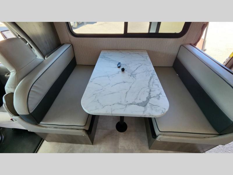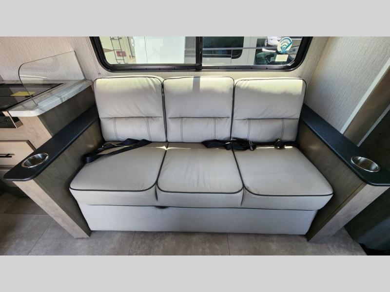 What sights will you see with this Freelander Class C gas motorhome? This model includes the CRV Comfort Ride which features heavy duty front and rear stabilizer bars, electronic stability control, Firestone Ride-Rite adjustable rear air bags, and more for an enjoyable journey each time. Will you set out to the beautiful Grand Canyon or trek through the Rocky Mountains? Whatever you choose to do, the accommodating features found in this coach will make every experience comfortable, like the queen-size bed in the rear private bedroom, the 72" sofa in the main living area, and the full bathroom with its standard shower and skylight. You will also find a full kitchen with a three-burner range, a residential microwave, and a double-bowl sink, so you will certainly eat well throughout every adventure. The kids are sure to love sleeping on the 30" x 68" booth dinette with a flip-up bunk above, plus there is more sleeping space on the cab over bunk and the furniture in the main living area!