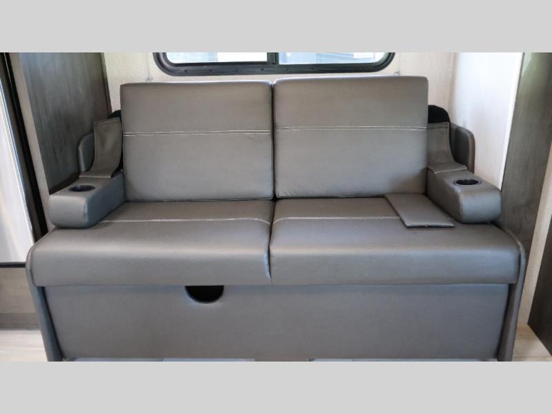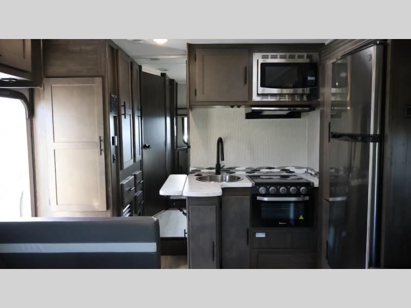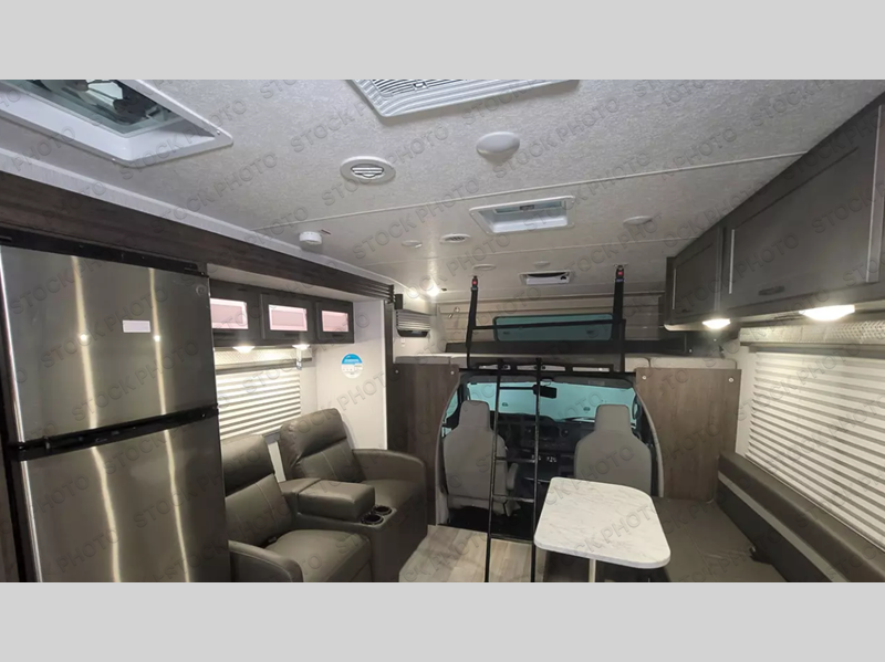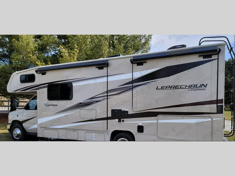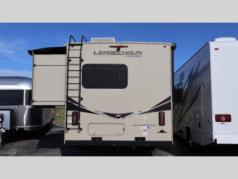 With each Leprechaun Class C gas motorhome by Coachmen you will enjoy "better" interior appointments, like the premium hardwood cabinet doors and drawer fronts, the one-piece thermofoil countertops, and the premium vinyl flooring. You will sleep soundly each night on the upgraded mattress and staying clean will be easy with the premium showerhead and faucet in the bath. These models include reclining cockpit seats, cruise control, and a rear backup camera so you can easily get in and out of the campground. The Leprechaun is constructed with Azdel composite sidewalls, CrossFlex PVC, polyester reinforced roof material, and vacu-bond laminated walls, roof, and floor for a durable motorhome made to last.