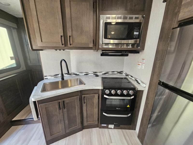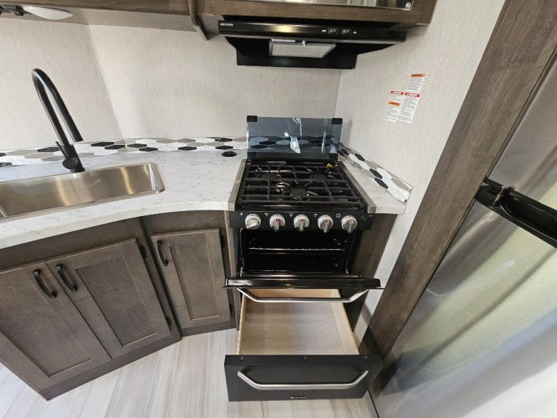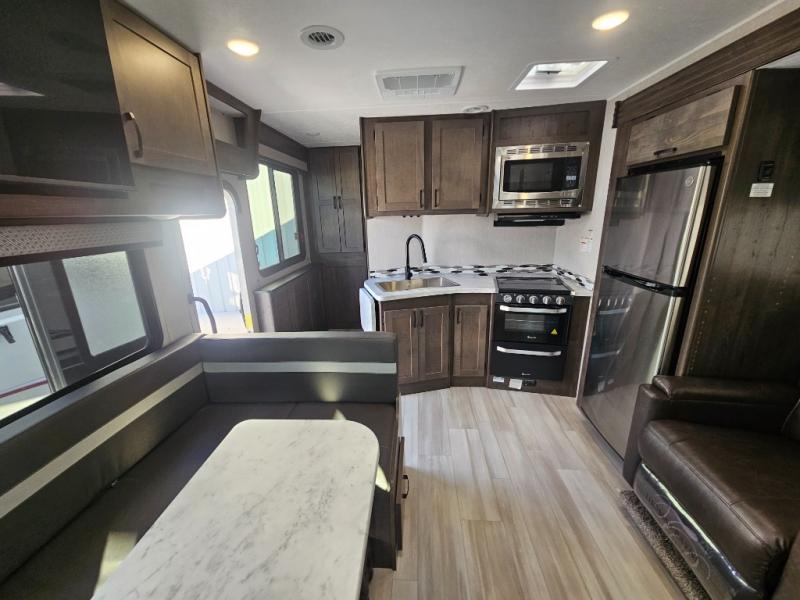 With each Leprechaun Class C gas motorhome by Coachmen you will enjoy "better" interior appointments, like the premium hardwood cabinet doors and drawer fronts, the one-piece thermofoil countertops, and the premium vinyl flooring. You will sleep soundly each night on the upgraded mattress, and staying clean will be easy with the premium showerhead and faucet in the bath. These models include reclining cockpit seats, cruise control, and a rear backup camera so you can easily get in and out of the campground. The Leprechaun is constructed with Azdel composite sidewalls, CrossFlex PVC, polyester reinforced roof material, and vacu-bond laminated walls, roof, and floor for a durable motorhome made to last.